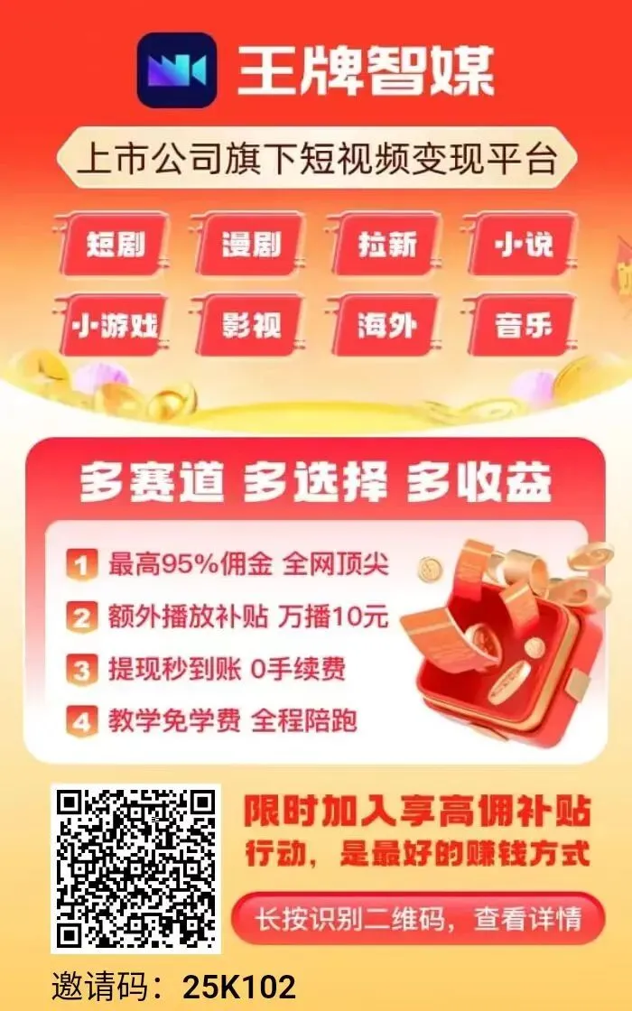 给大家唠唠一个能帮你搞钱的短视频神器——王牌智媒旗下【王牌智剪】App已经上线了!不管你是完全不会剪辑的小白,还是想靠自媒体做副业、稳赚零花钱的人,用它都能轻松上手,不用费脑子,轻松实现副业变现!
