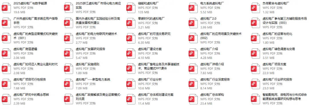 除完整版上文外,为了帮助大家更深入的了解虚拟电厂,我还另外整理了 30+ 份额外资料,包括 《虚拟电厂行业研究报告》、《虚拟电厂项目方案》、《虚拟电厂建设方案》等等。