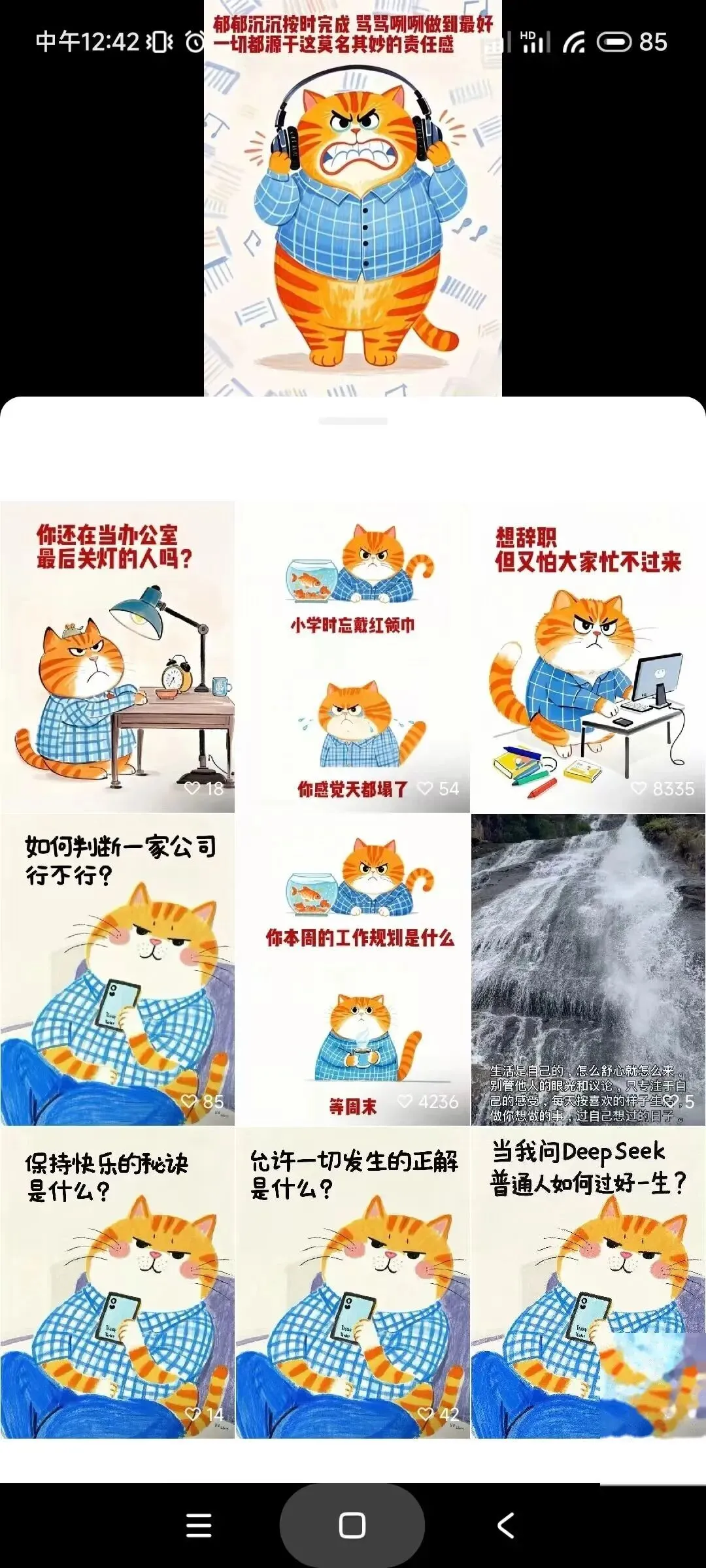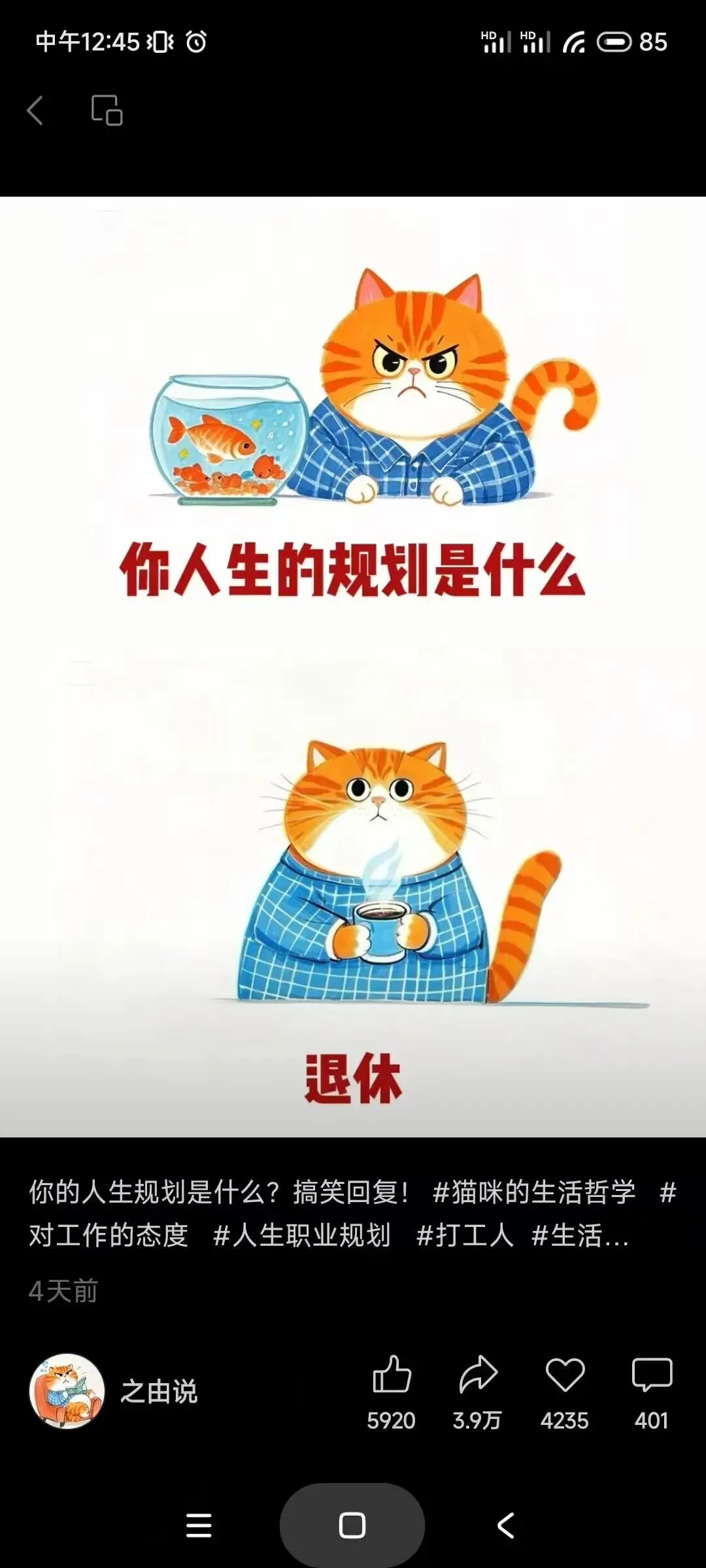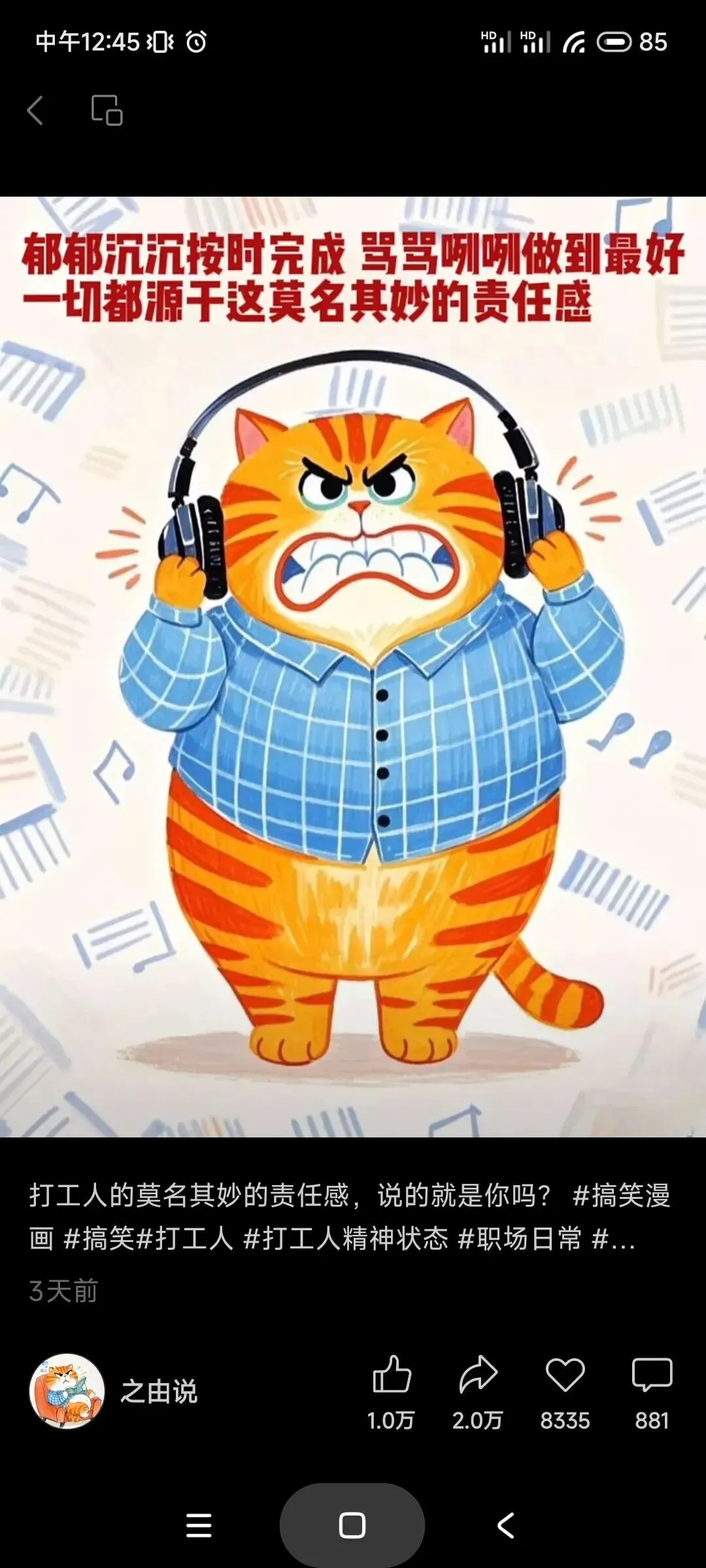 比如抖音里这个“打工猫”,很常见吧: