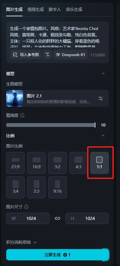 先生成一个1:1比例的图片。