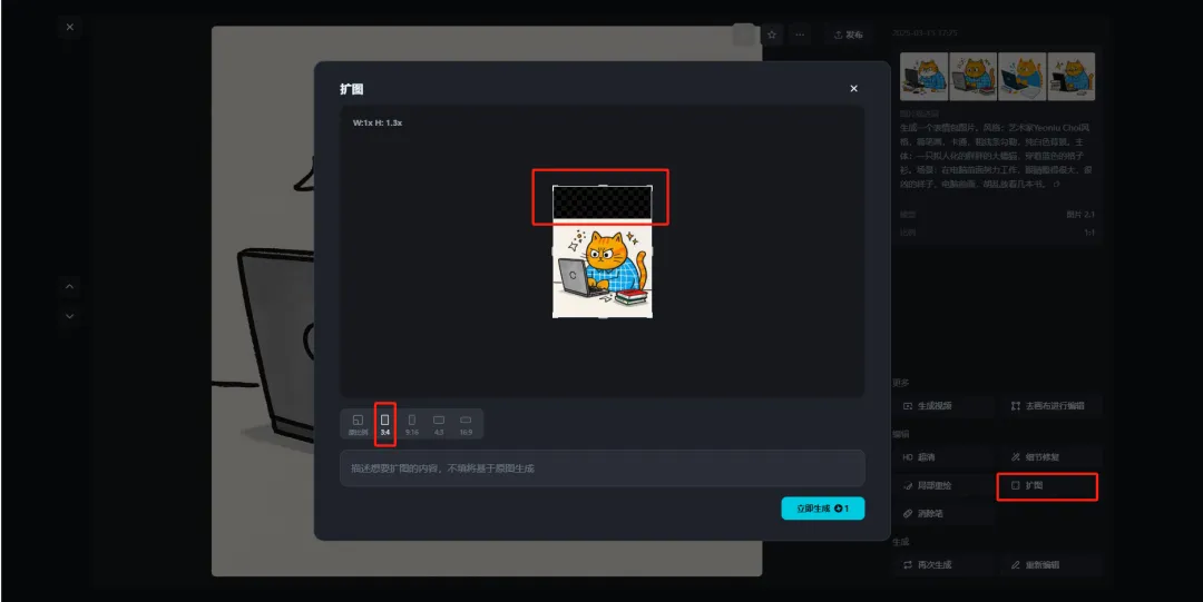 右侧有个”扩图”功能,将图片扩充为3:4。