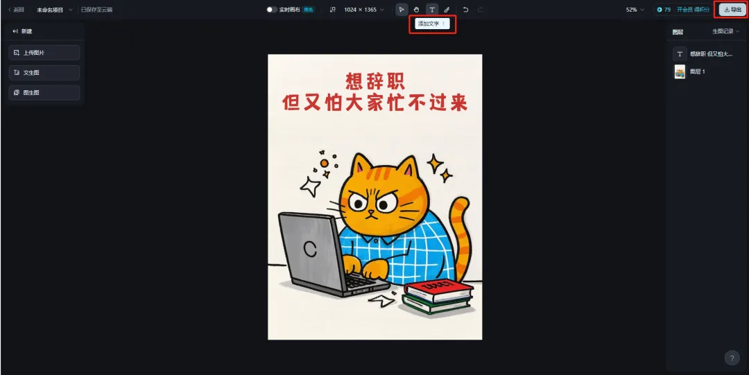 添加完文案后,点击右上方导出按钮。
