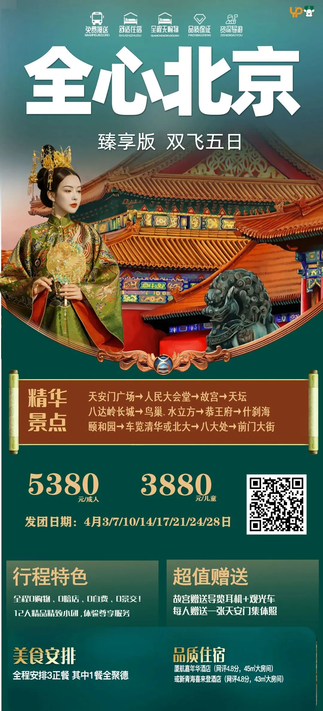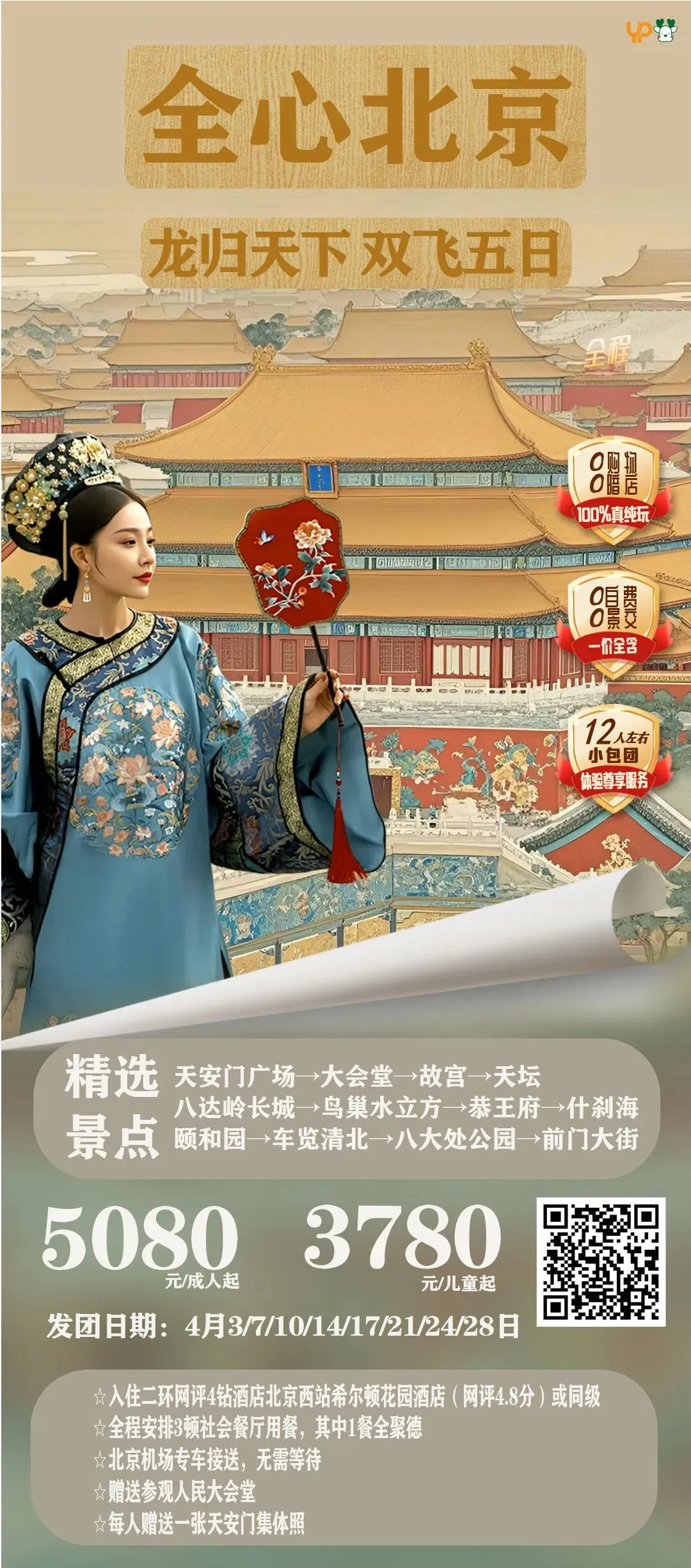 【全心北京.享道版】双飞5日