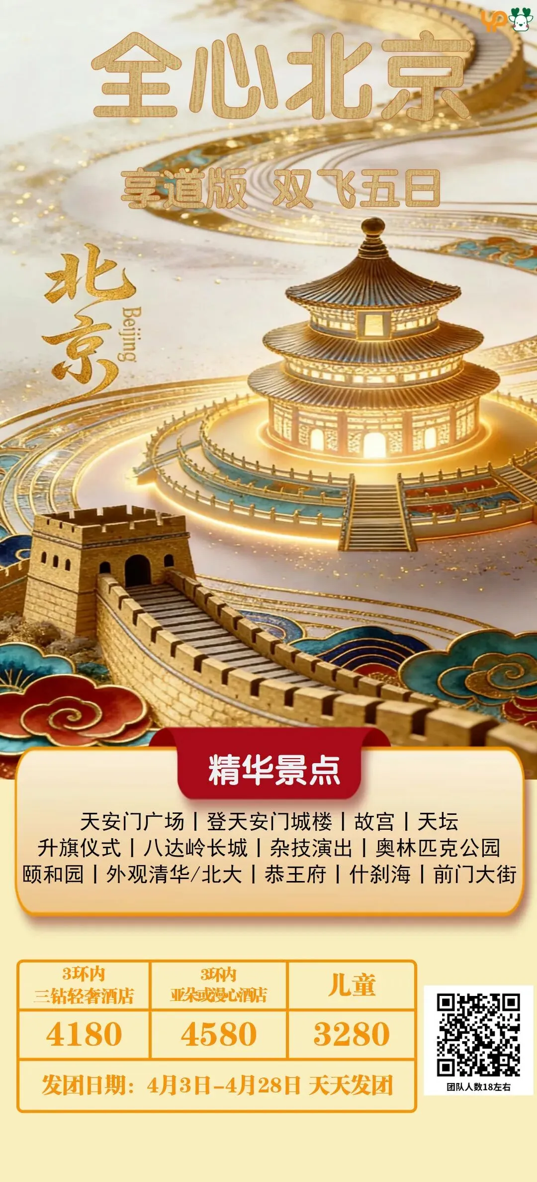 【全心北京 9人小团】双飞5日