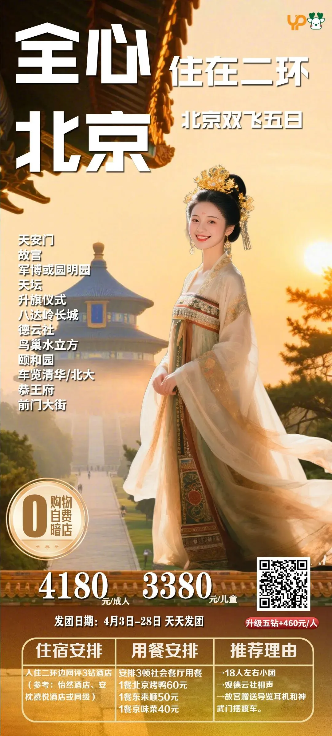 ✔赠送登天安门城楼 感受国之大典的盛况