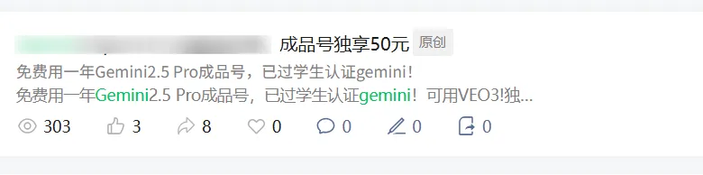 例如我在闲鱼买了一年GEMINIPRO(学生版)才10元,公众号卖出去50元一个。