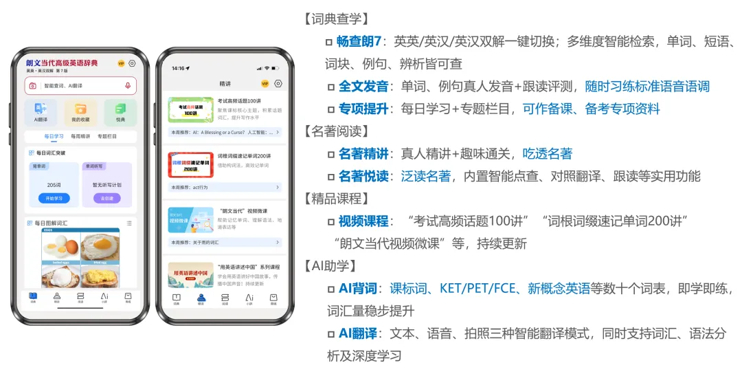 虽然打卡活动结束了,但英语学习的旅途永不停歇,朗7 APP会继续做大家的英语学习搭子,权威查词、名著阅读、精品课程、AI背词等超多功能,助你随时随地提升英语能力。目前购买朗7纸书即可获赠一年的朗7 APP会员权益,新用户、朗6APP老用户或朗7纸书用户购买朗7 APP无限期会员也都可享受不同程度的优惠。(点击此处了解朗7 APP)