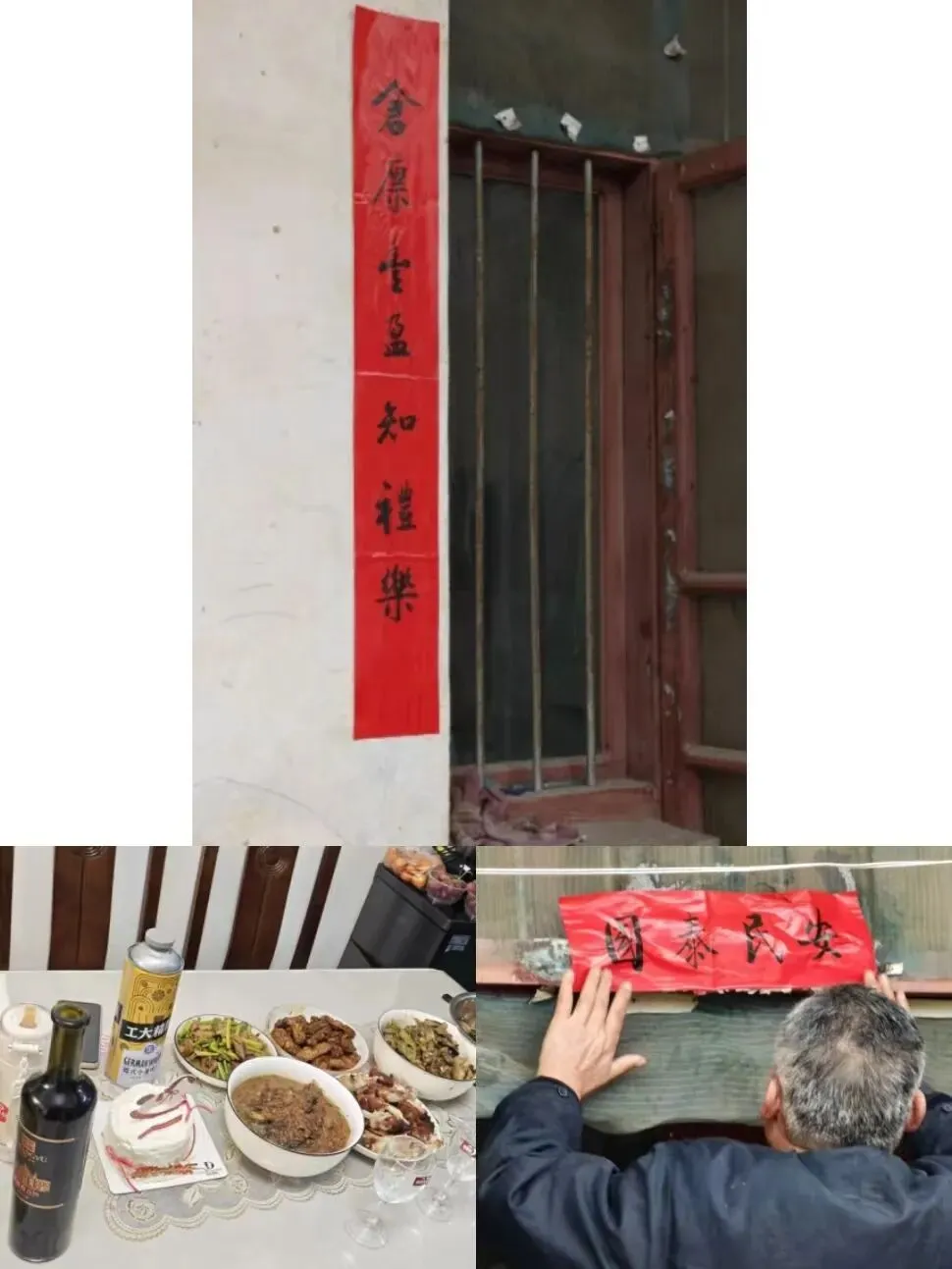 《旧符新桃》:用自制的浆糊刷在旧春联上,将大红春联贴在上方,是家乡过年最隆重的仪式,祈愿新的一年福气满满。