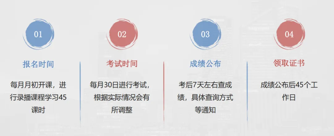 学校统一报名考试,考试时间:每月30日有线上考试(根据官方实际公布时间为准)