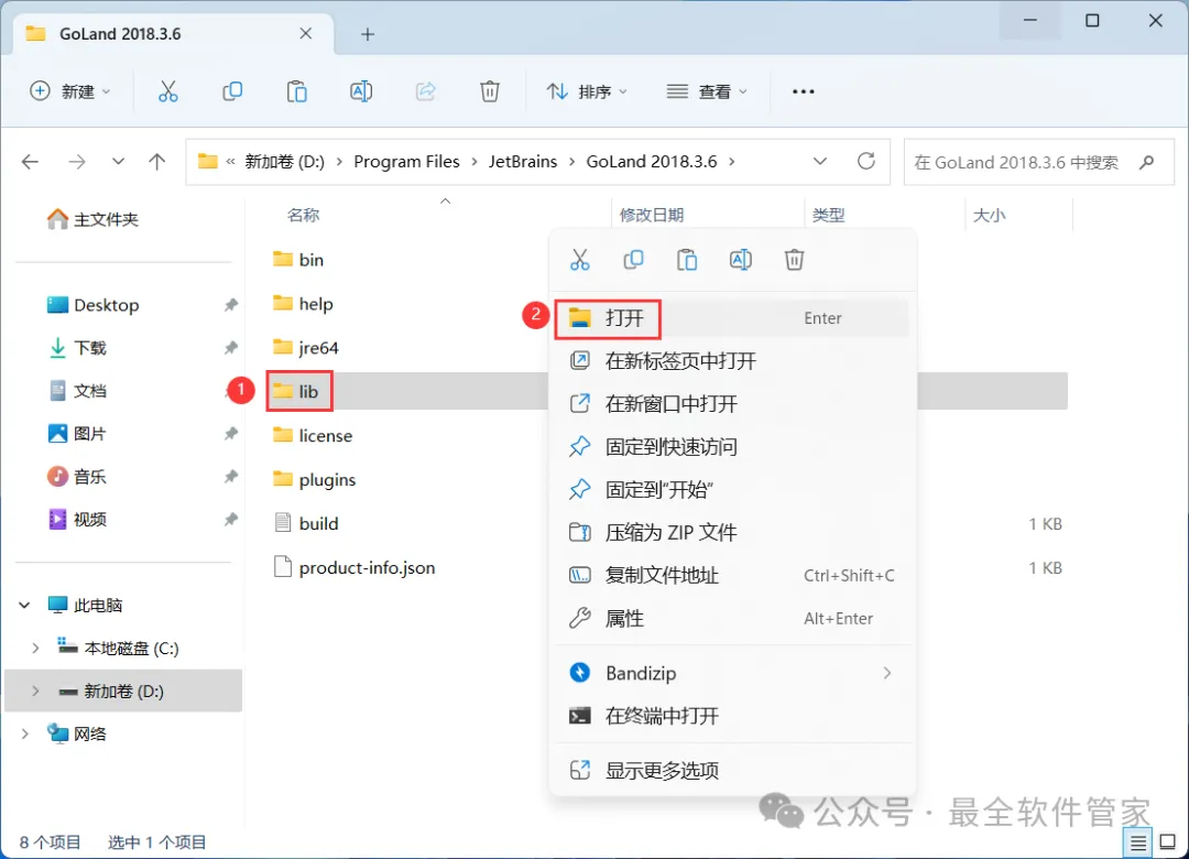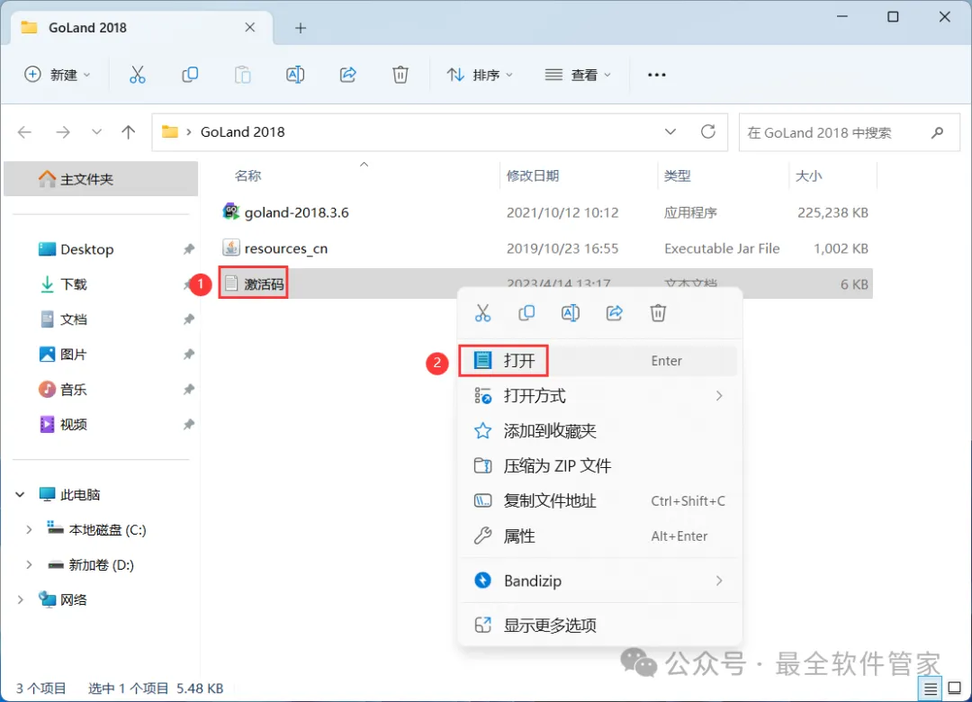14、回到GoLand 2018文件夹,找到【激活码】文件,右键【打开】它