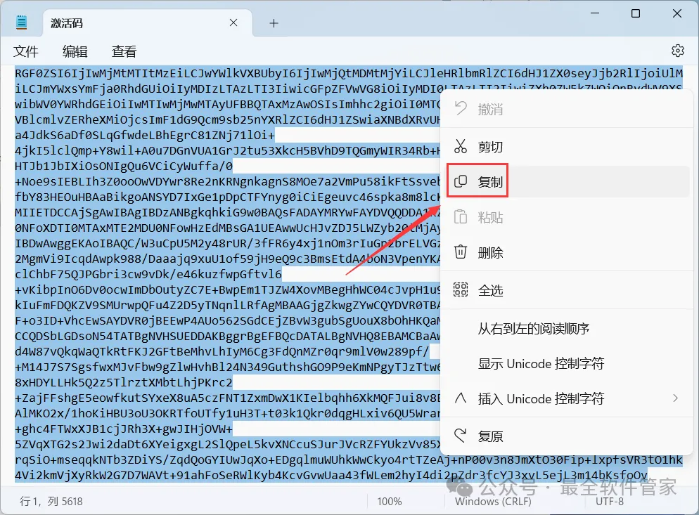 16、回到软件界面,右键Activation code下的空白处,点击【Paste】