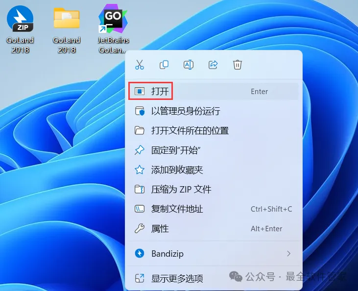 10、回到桌面,右键桌面上的【GoLand 2018.3软件图标】,点击【打开】