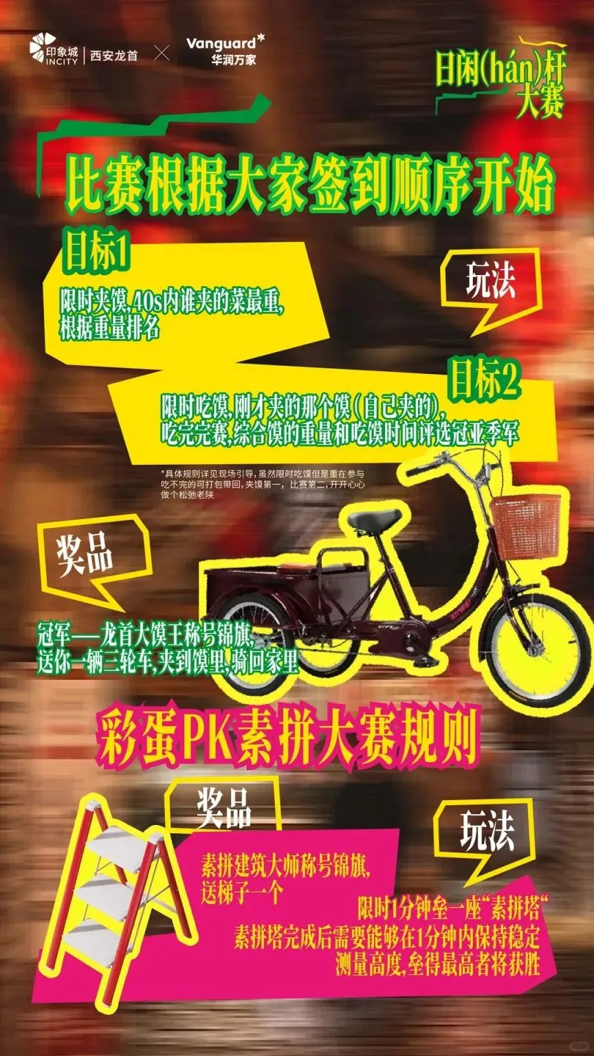 ✅报名入口:印享星小程序,大家可以在【西安周末去哪玩】微信公众号回复【日闲杆】进入报名入口,获取活动参与攻略,规则,奖品等。