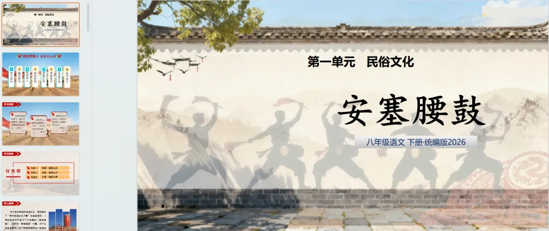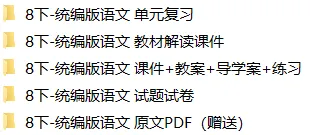 【电子版】2026春统编版初中八年级语文下册 (教案+课件试题试卷)全套下载 可打印 下载原文请拉到文末 下载原文请拉到文末 01 资料目录 下拉到文章底部有二维码的地方下载 02 部分课件展示 版面有限 仅展示部分内容 03 部分教案展示 版面有限 仅展示部分内容 下载方法 长按二维轻松下载 电脑下载,方便保存 复制网址去电脑打开: https://jazpan.com/view/2441951 更多资源,关注以下公众号 教师·学生 图文来自网络,版权归原作者,如有不妥,告知即删 点击阅读原文下载1-12年级全部资料