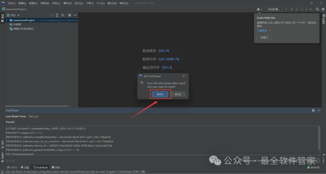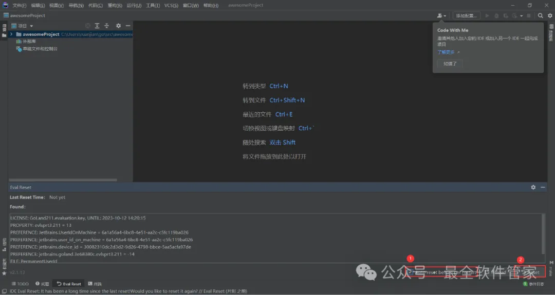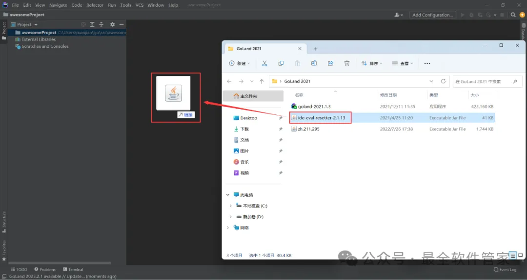 15、回到GoLand 2021文件夹,将【ide-eval…】文件拖到软件界面内