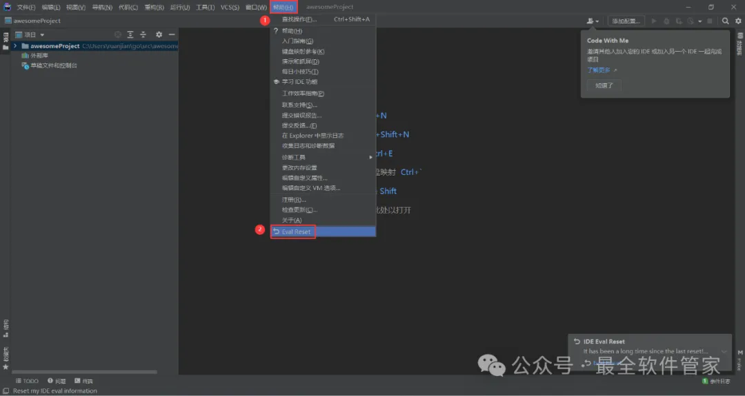 19、依次点击【帮助】、【Eval Reset】
