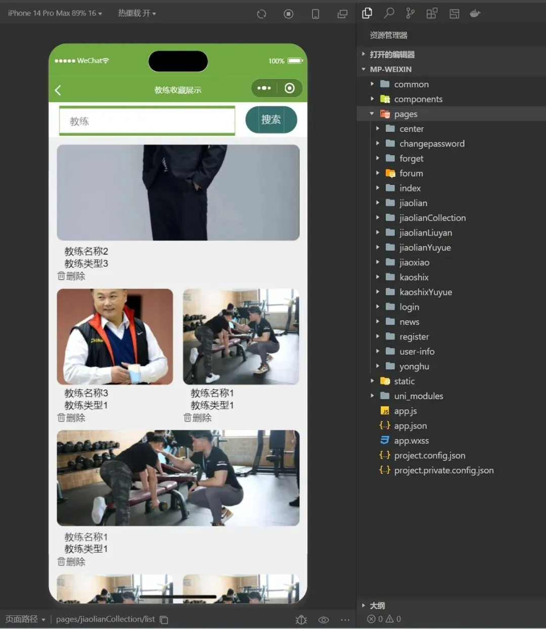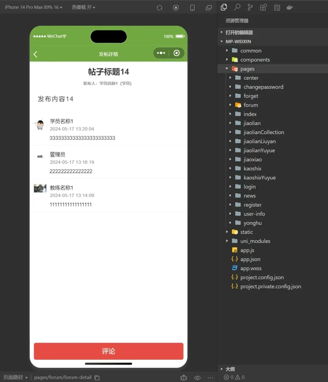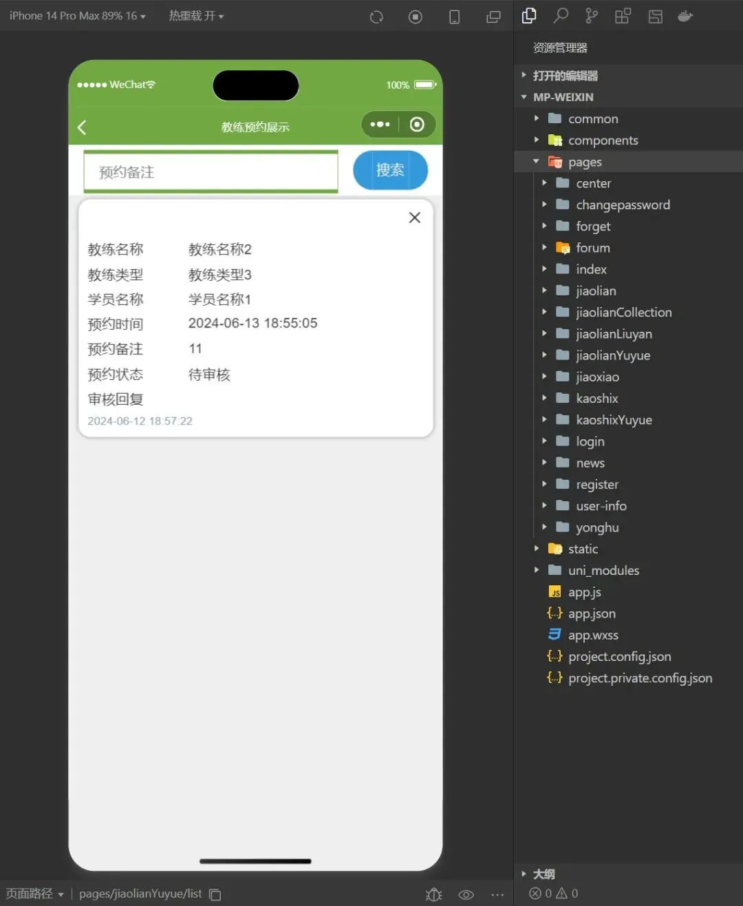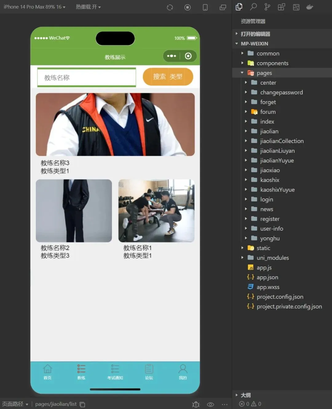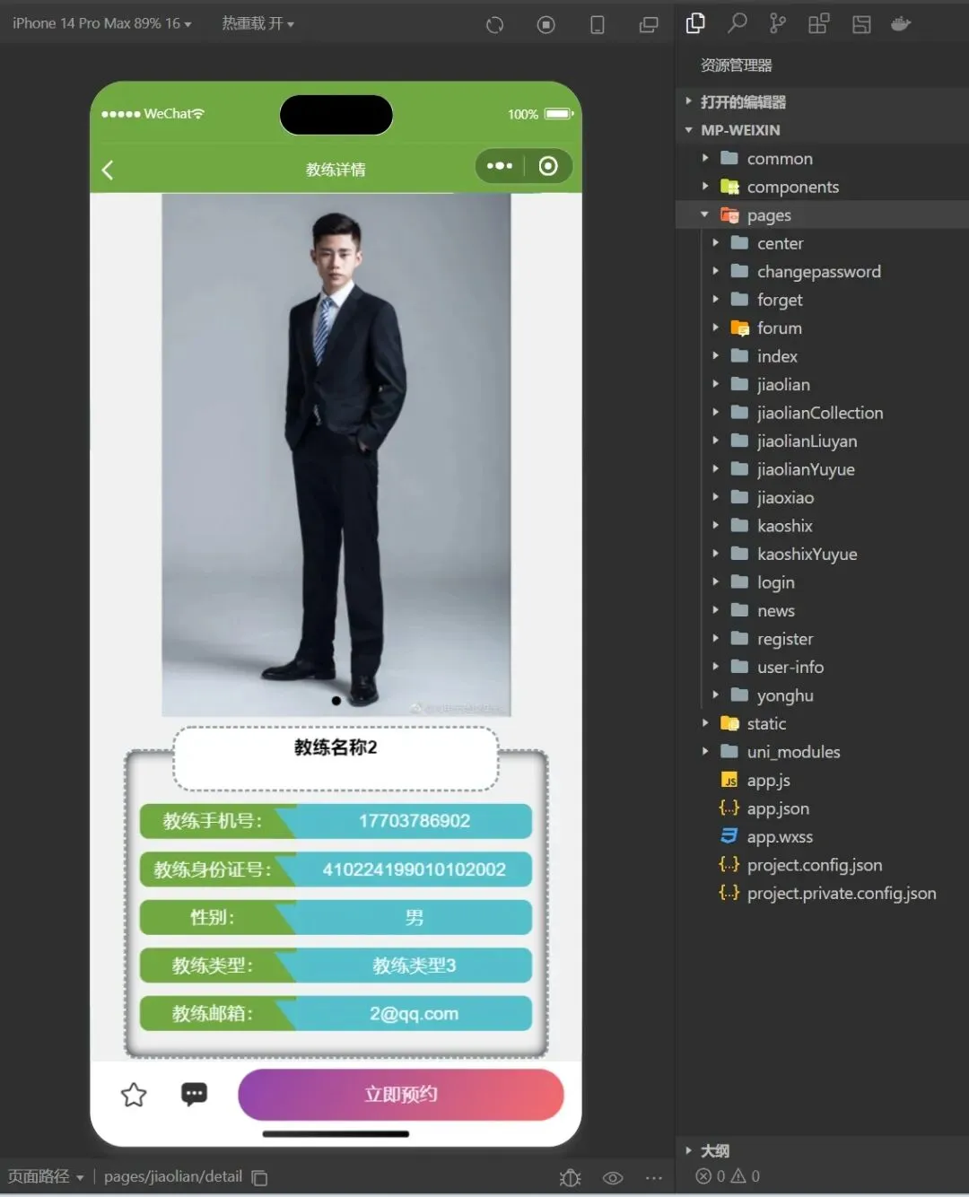 本项目前后端分离,分为用户、教练、管理员三种角色