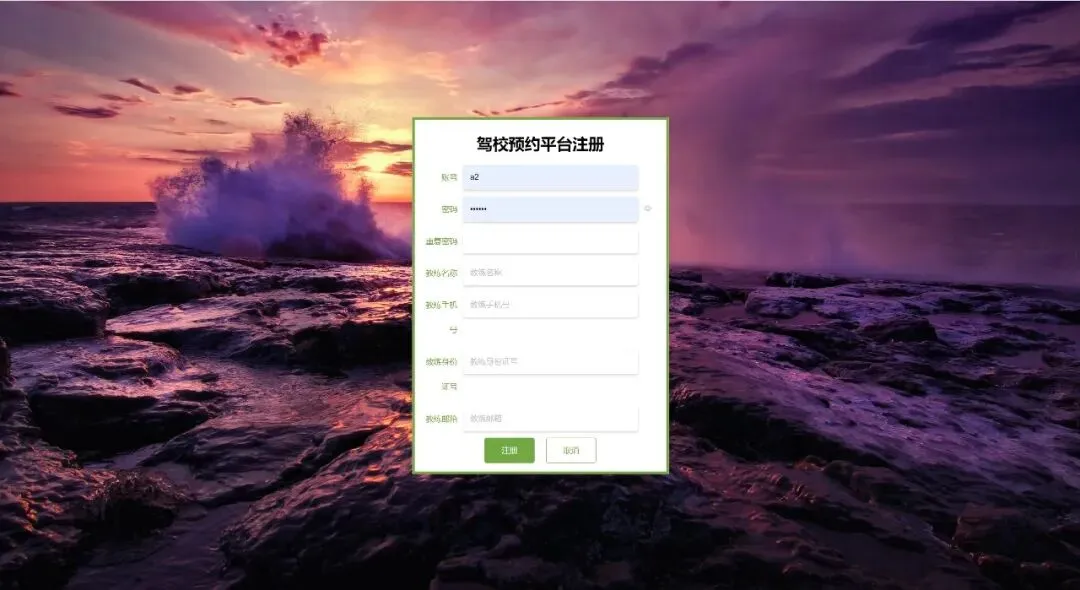 注册、登录、教练预约、教练留言、收藏、公告信息、论坛信息、考试预约、密码修改、个人信息