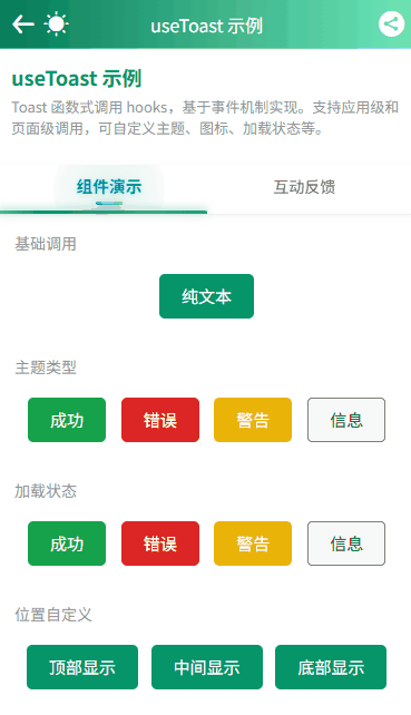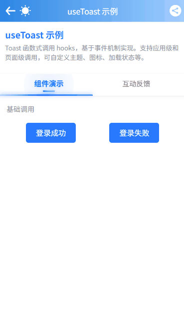 // 子组件中const toast = useToast({ page: 'parentToast' })toast.success('子组件触发的提示')