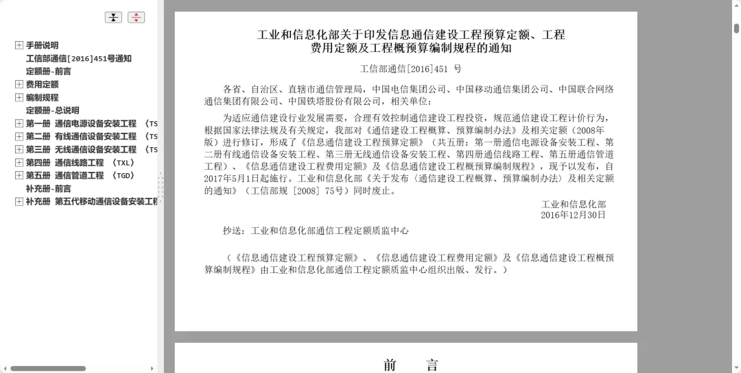工信部451定额的权威电子手册,集成费用定额、编制规程与六大分册,支持全文检索、自带勘误修正,是通信工程概预算人员的效率利器。