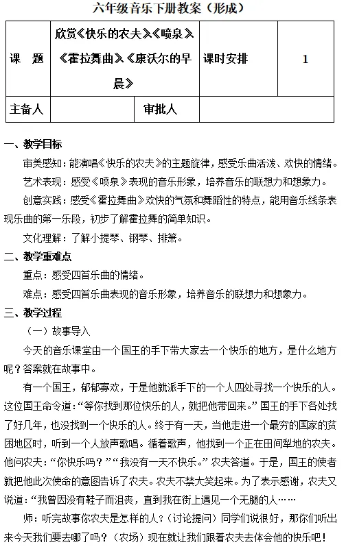 【电子版】2026春人教版小学六年级音乐下册 (教案+课件+音频)全套下载(第1套) 可打印
