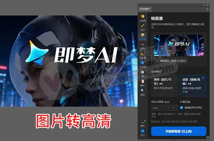 本地离线免费使用!现遇到客户给的图片模糊不清?用这个功能,选择“通用”或“动漫”模型,直接把图片清晰度拉满,细节还原度极高