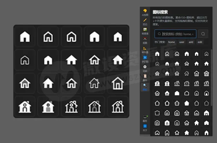 在线联网免费用!现在插件对接超过20万个开源矢量图标,支持英文搜索,直接拖拽进AI使用,不用再切屏找素材了