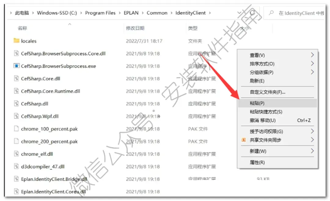 17、打开路径地址:C:\Program Files\EPLAN\Common\IdentityClient,在空白处鼠标右击选择【粘贴】