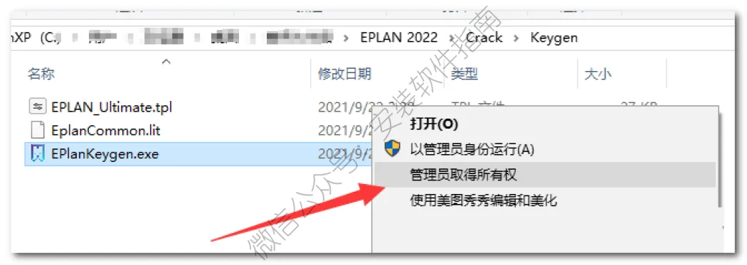 19、回到安装包里的【crack】文件夹,双击打开【Keygen】文件夹,右击【EPlanKeygen】选择【以管理员身份运行】