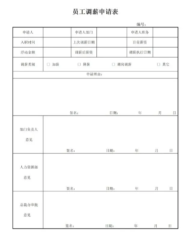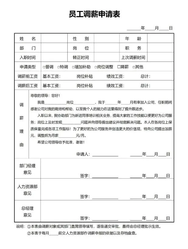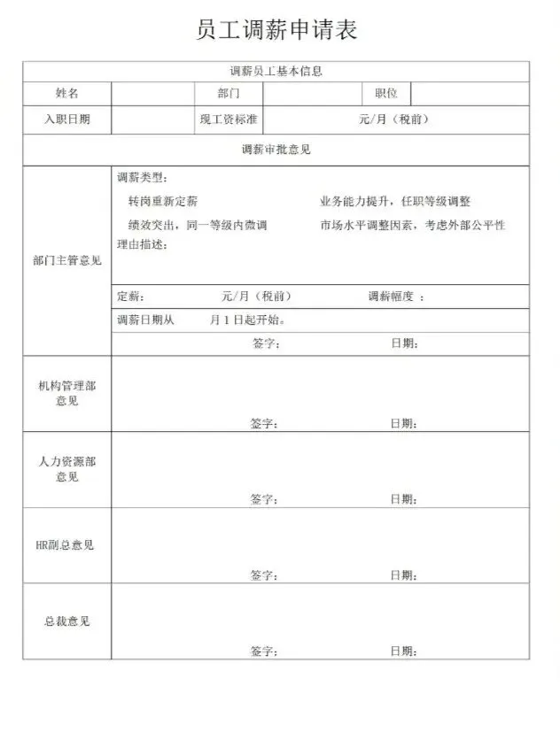 本文内容分享【调薪申请表模板】(文末可免费领取word电子版)