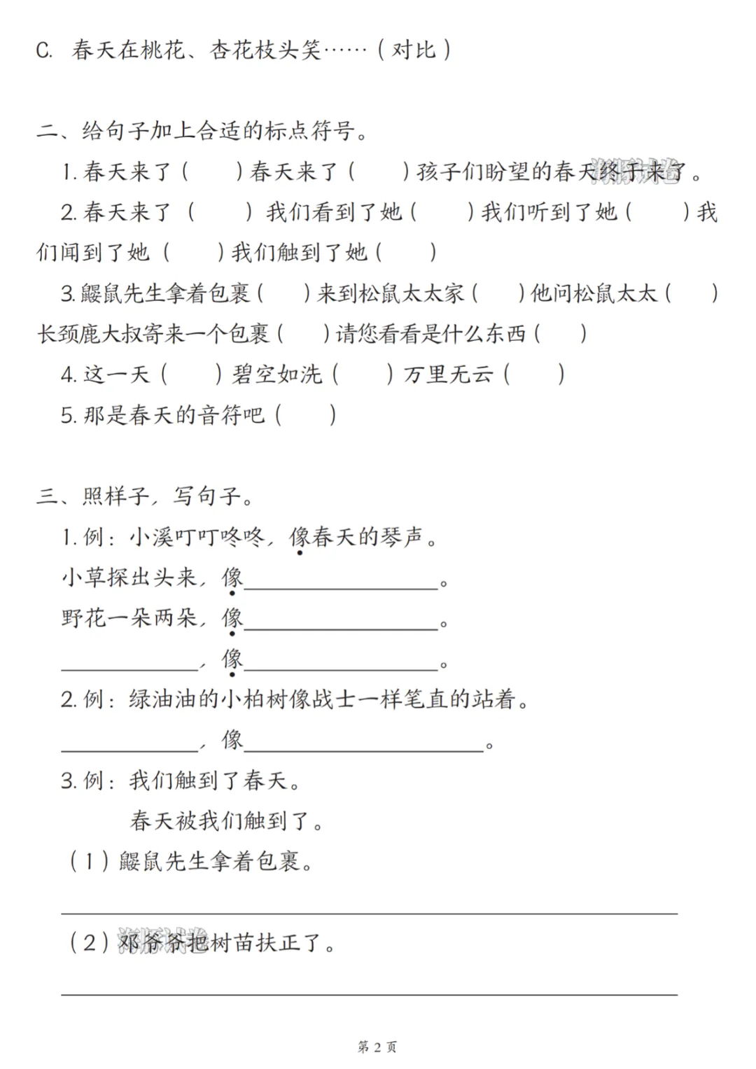 二年级(下)语文第一单元句子专项练习