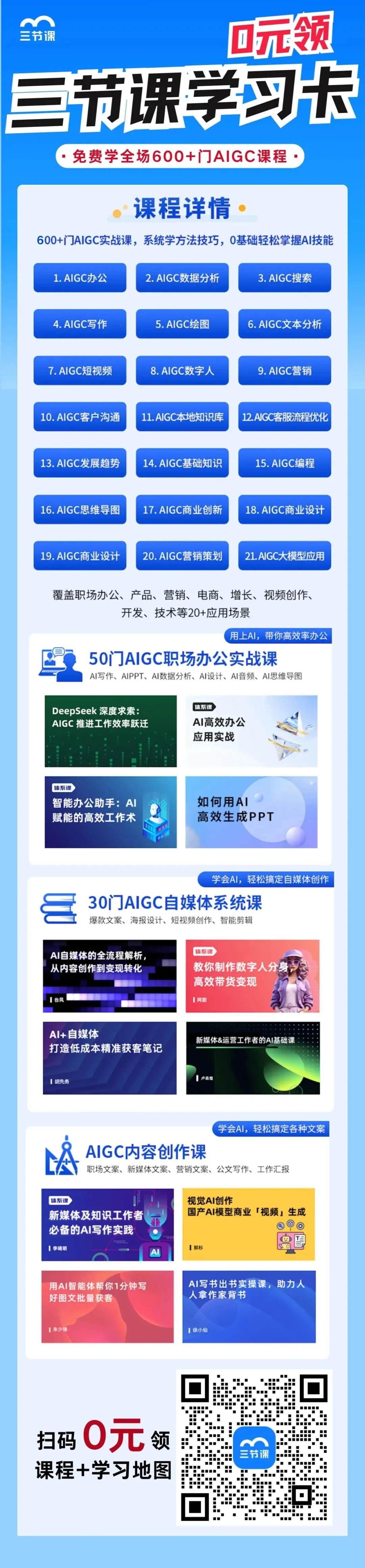 除了免费领这份资料,新同学还能0元解锁三节课 600+门AI实战课,