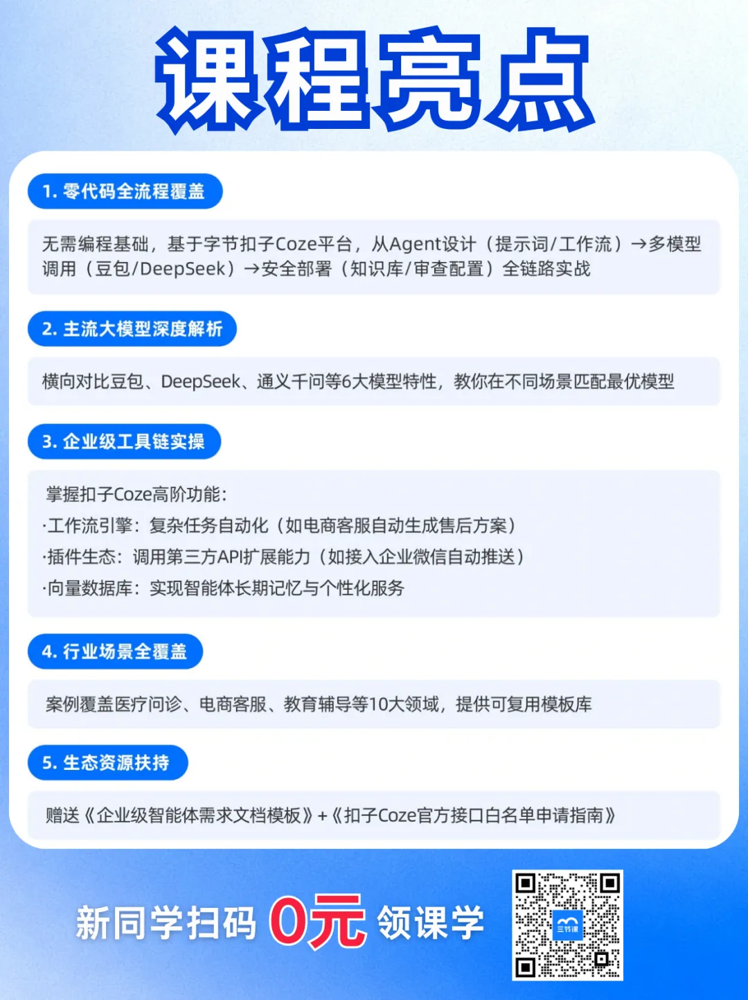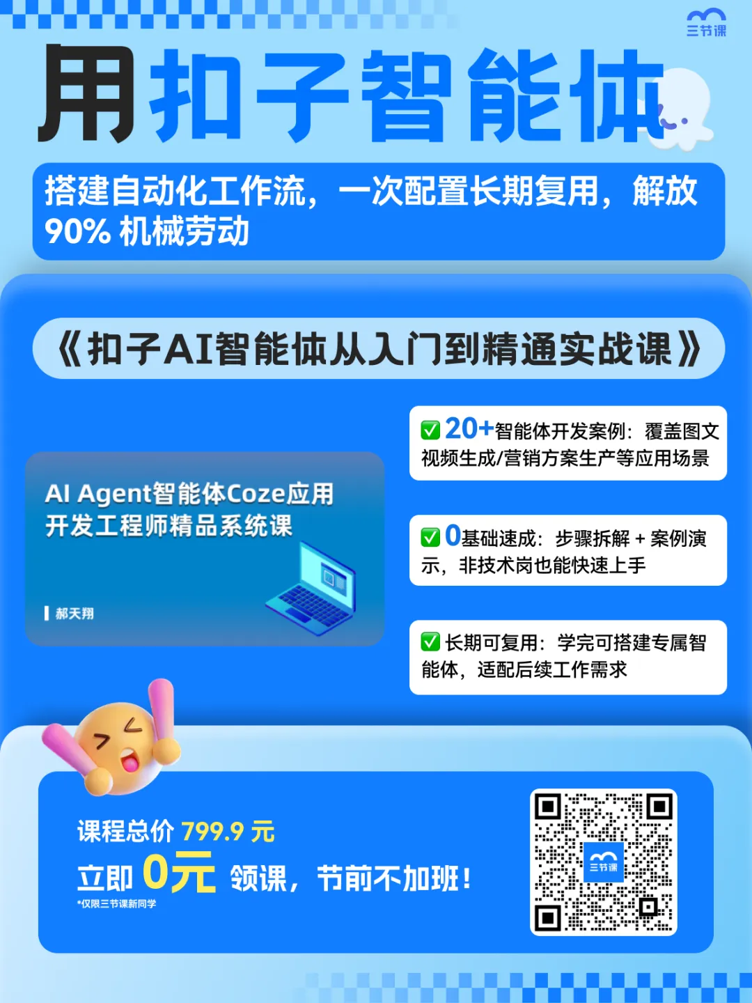 这门《AI Agent智能体Coze应用开发工程师精品体系课》,就基于「智能体原理+智能体搭建平台+真实案例演示」等全链路板块入手,带你掌握: