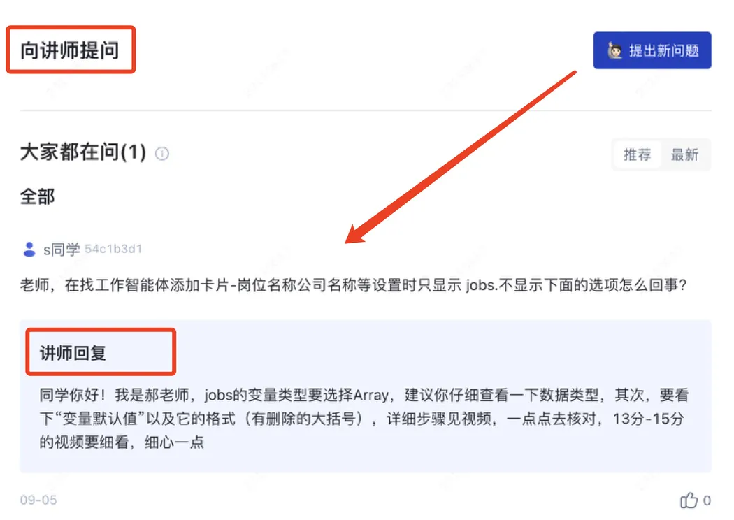 内容有不懂的问题也可以在下方向讲师提问,老师看到就会回复喔~