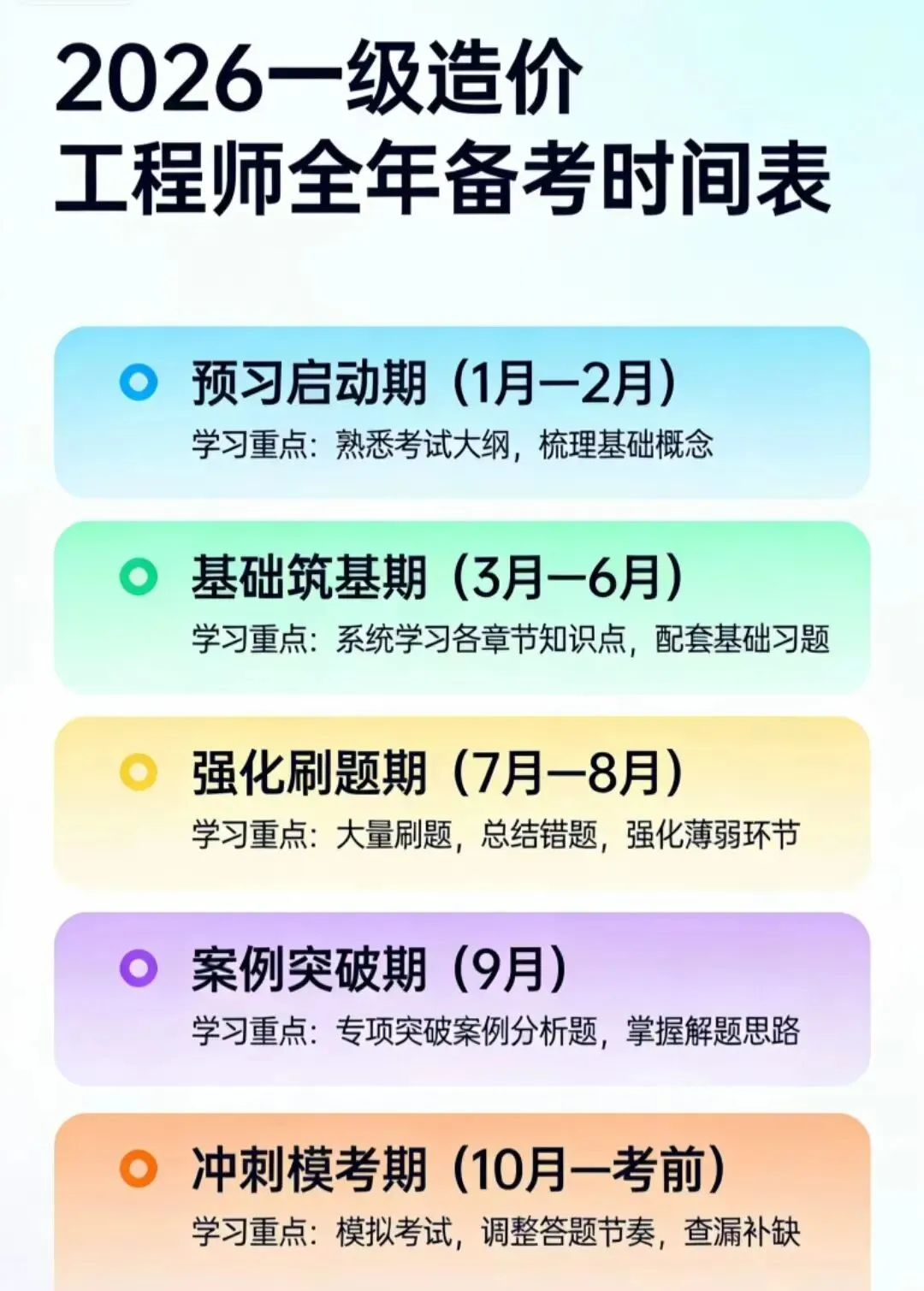 2026年一造考试时间敲定10月17-10月18日,现阶段一直到6月份都是打牢根基、搭建知识框架的黄金时间!