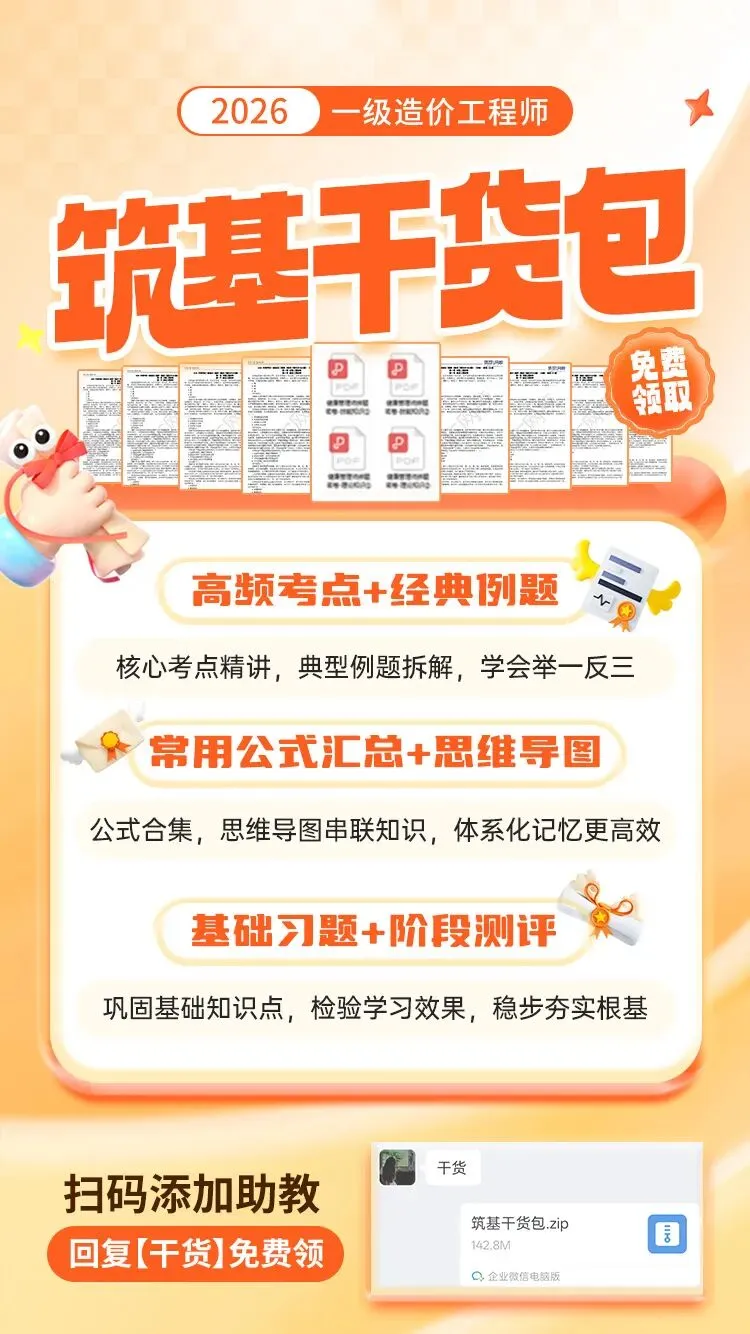 如果现在你还在为记公式、理考点发愁,这份《一造筑基干货包》就是你的备考好帮手,帮你节省整理资料的时间,把精力全放在知识点学习上,让基础备考更高效、更有方向!