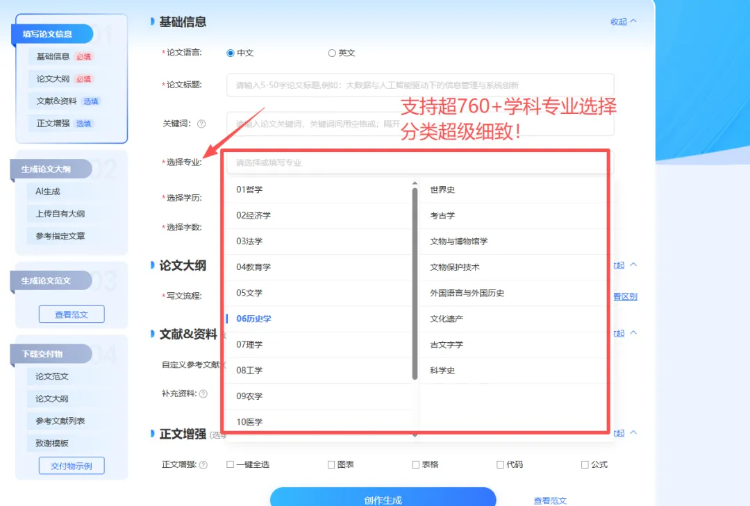 (2)大纲支持免费生成,并且可以参考自有大纲以及开题报告等内容,更贴合咱们的需求。