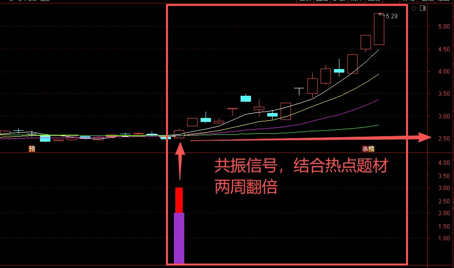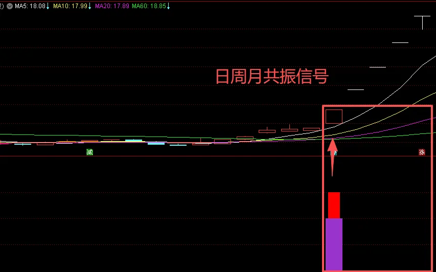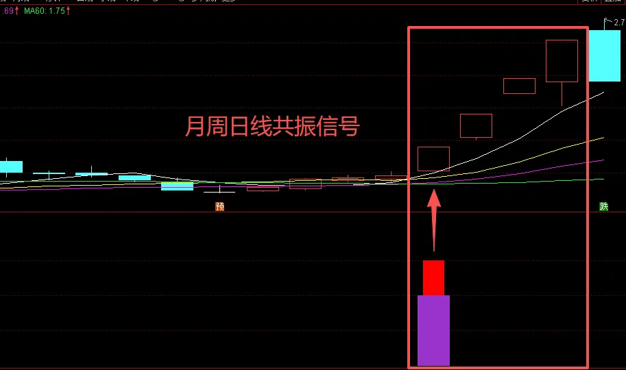 月周日共振信号,是识别日线级别,周线级别和月线级别在走势中出现共振信号把它识别到副图之上,可以一目了然。并不是说它们发生共振就会百分百涨停,任何指标都是旨在快速筛选,世面上没有百分百准确率的指标,合理运用指标,不比某些群内售几个W的指标差。
