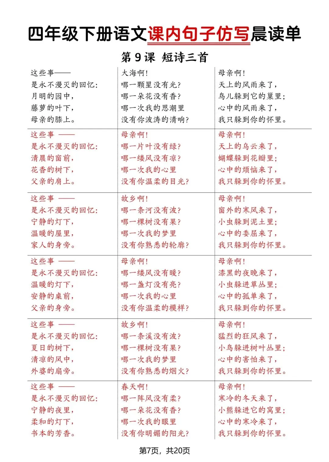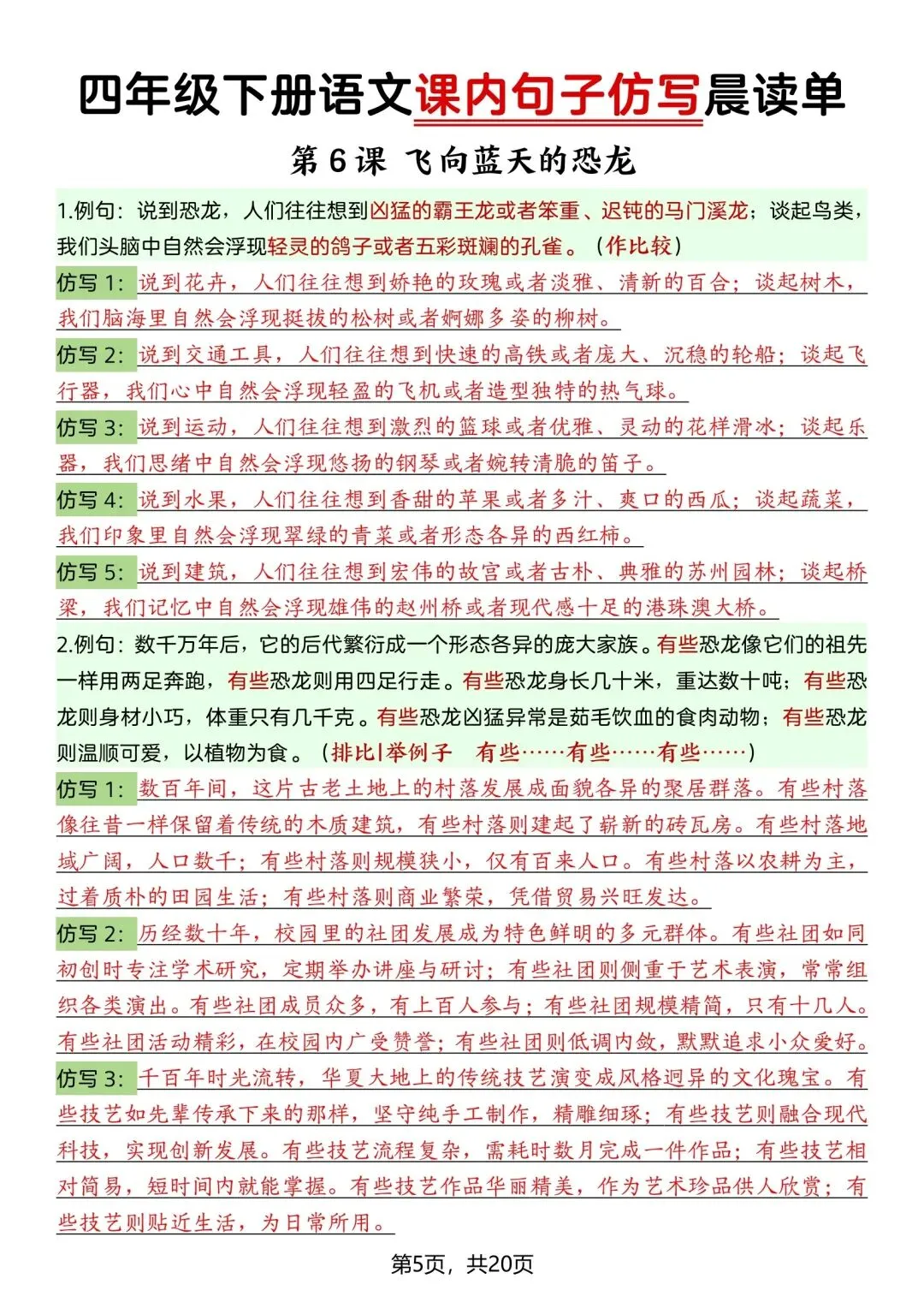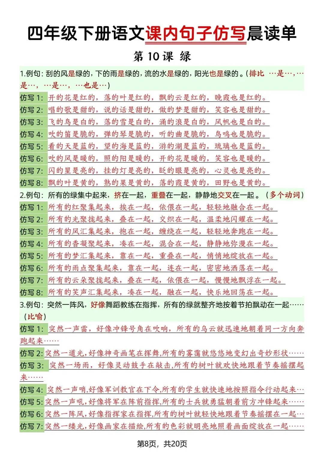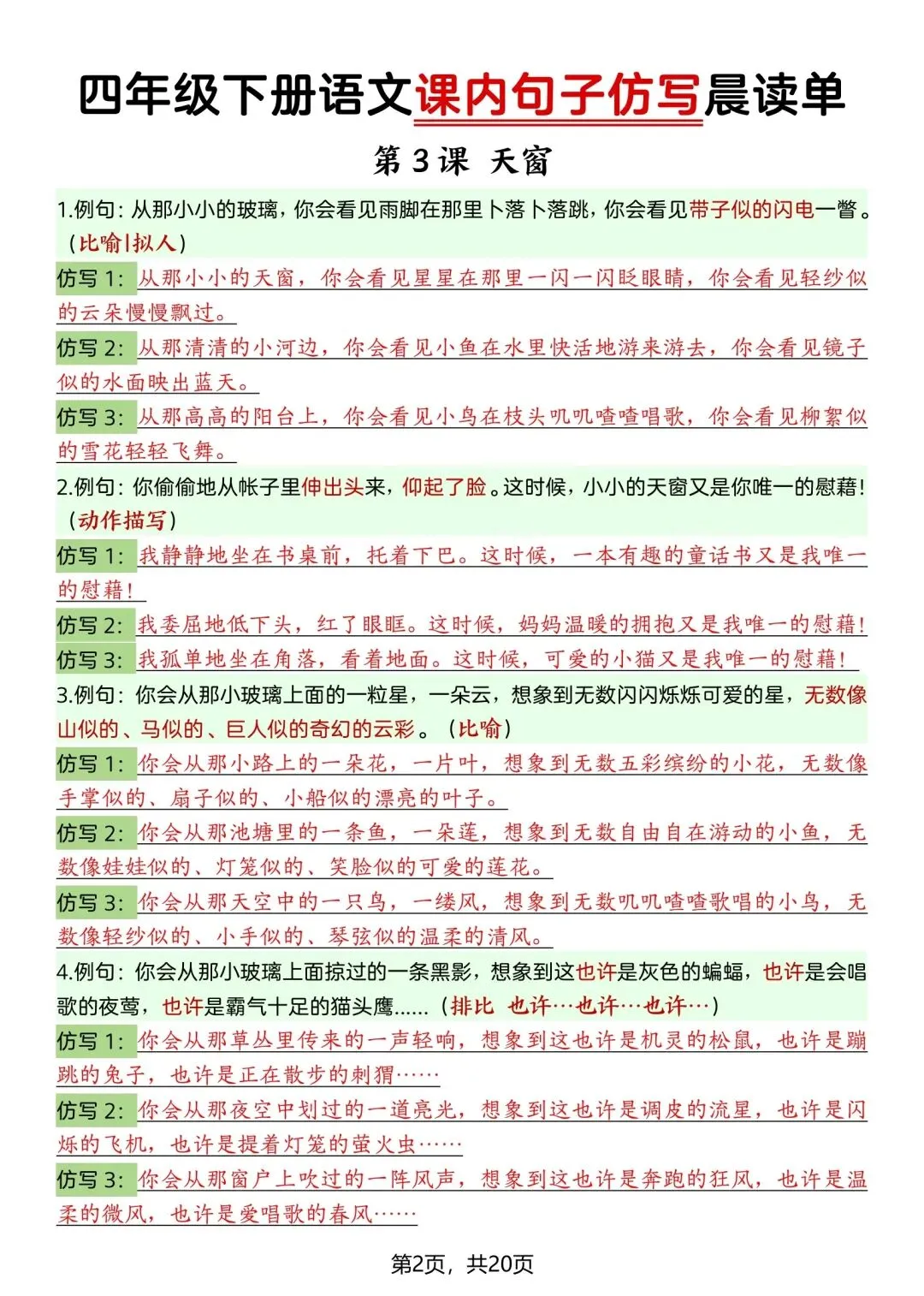 26新四年级下册语文课内句子仿写晨读单(电子版可打印) ▲点击关注(乐一资料库)可查看更多优质资料 (温馨提示:文末有领取方式) 领取方式 ①:点一点右下角的“赞”和“在看”,感谢🙏🏻 ②:完整版领取四年级上册语文期末复习资料