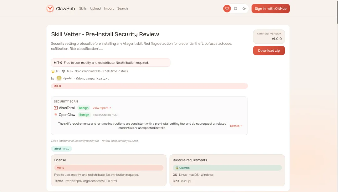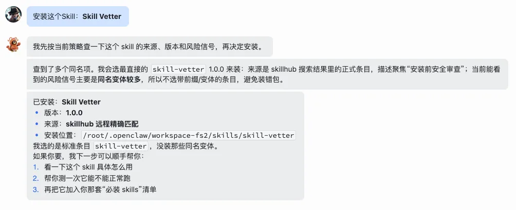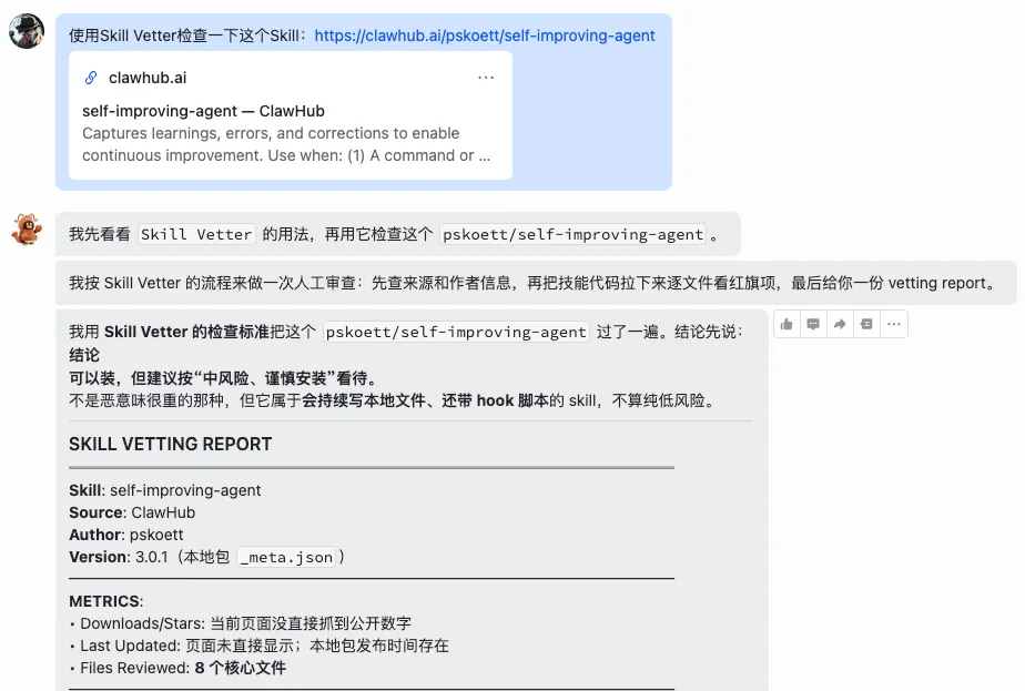 不过就算有官方扫描,我还是建议你把Skill Vetter装上。