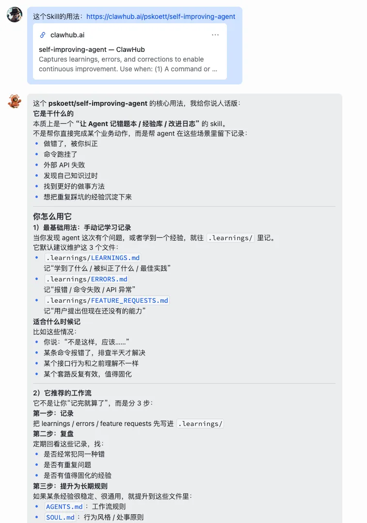 但装了这个Skill之后,它会记住当时在干什么,出现了什么错误,最后是怎么解决的。