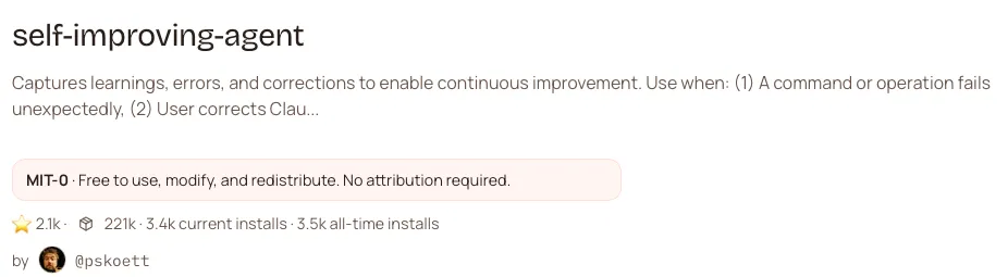 所以在我看来,Self-Improving Agent和Agent Memory都属于很核心的Skill。