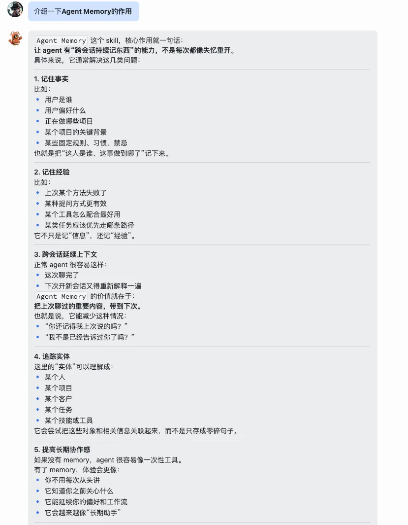 你跟它说过的内容,只要是有用的,它都能持续记着。