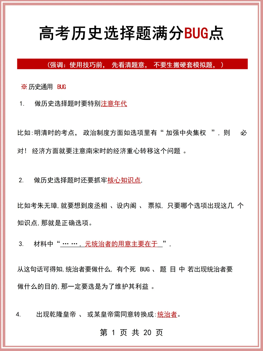 2026最新版:高考历史选择题满分点(可打印)还不快看!
