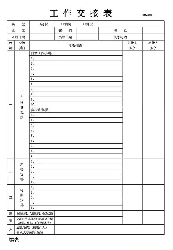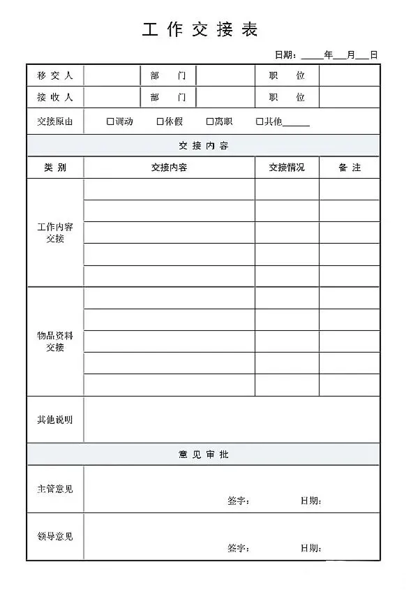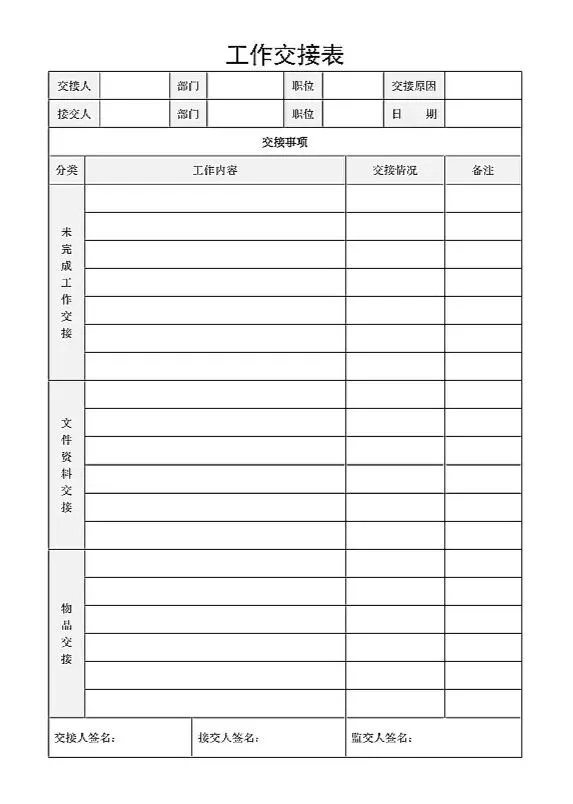 本文内容分享【工作交接表模板】(文末可免费领取word电子版)