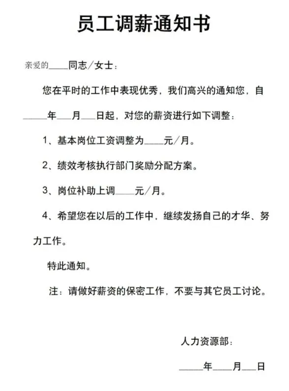 本文内容分享【调薪通知书模板】(文末可免费领取word电子版)