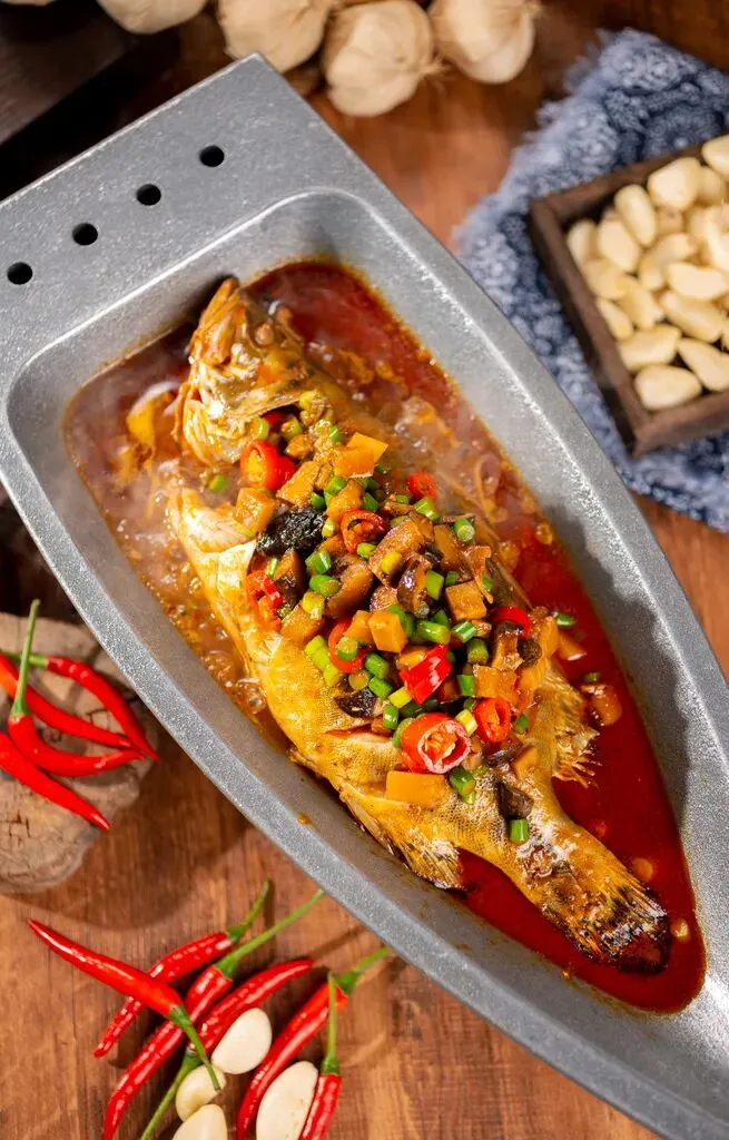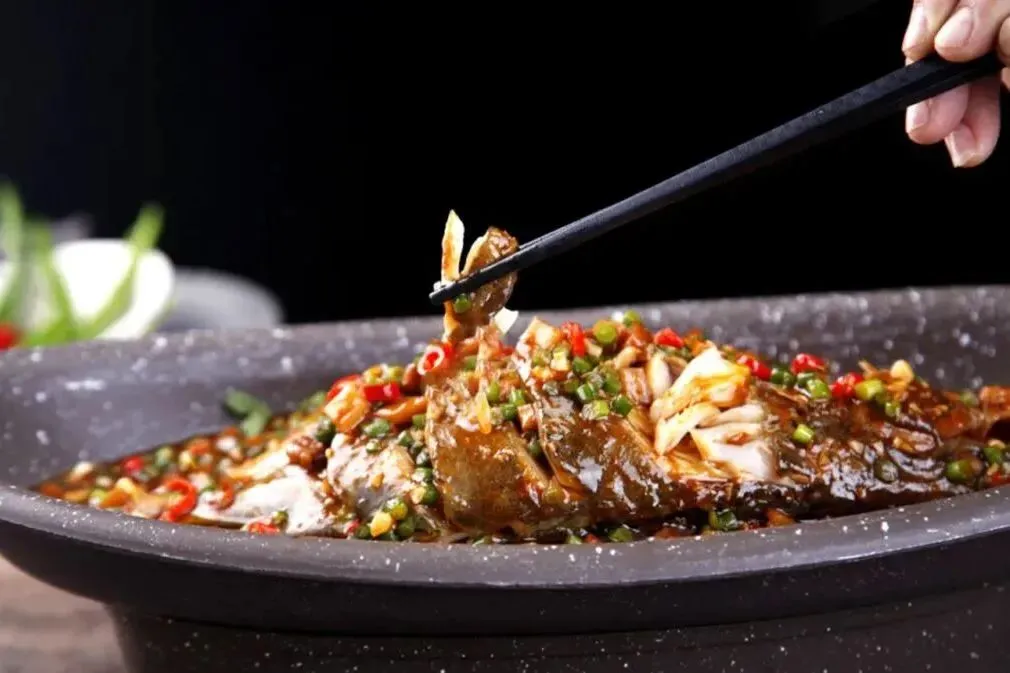 筷尖轻轻一拨,鱼肉不散,而是整瓣儿翘起,如百合初绽。送进嘴里,咸鲜打头,醇厚的、层层递进的香,在齿颊间回旋。闻之微臭,食之异香;外表豪放,内里细腻。它矛盾,却统一。