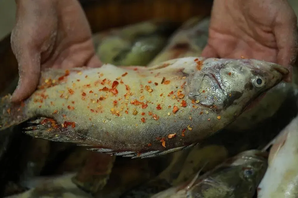 石头的分量,把鱼身里的水分一点点挤出去。鱼肉在压力下慢慢紧实,才有了后来一瓣一瓣、蒜瓣似的模样。更重要的是,它压出了时间发酵的节奏,蛋白慢慢分解,鲜味层层累积。