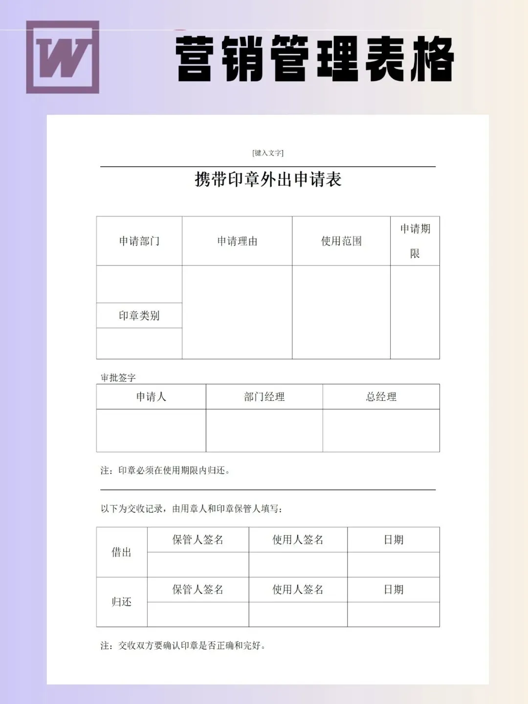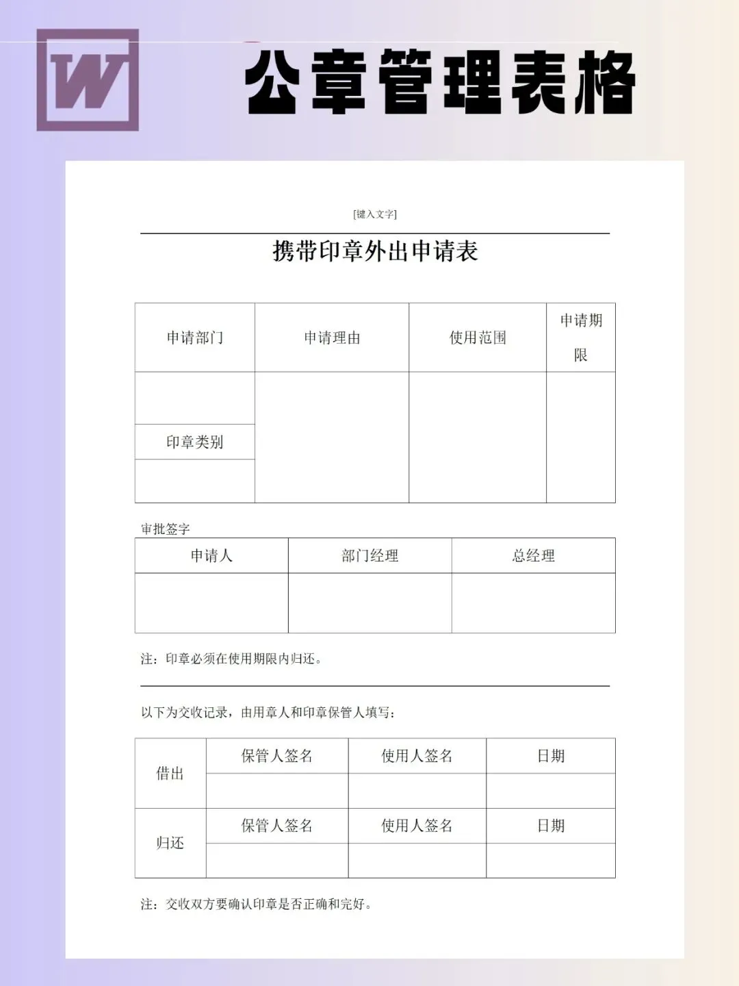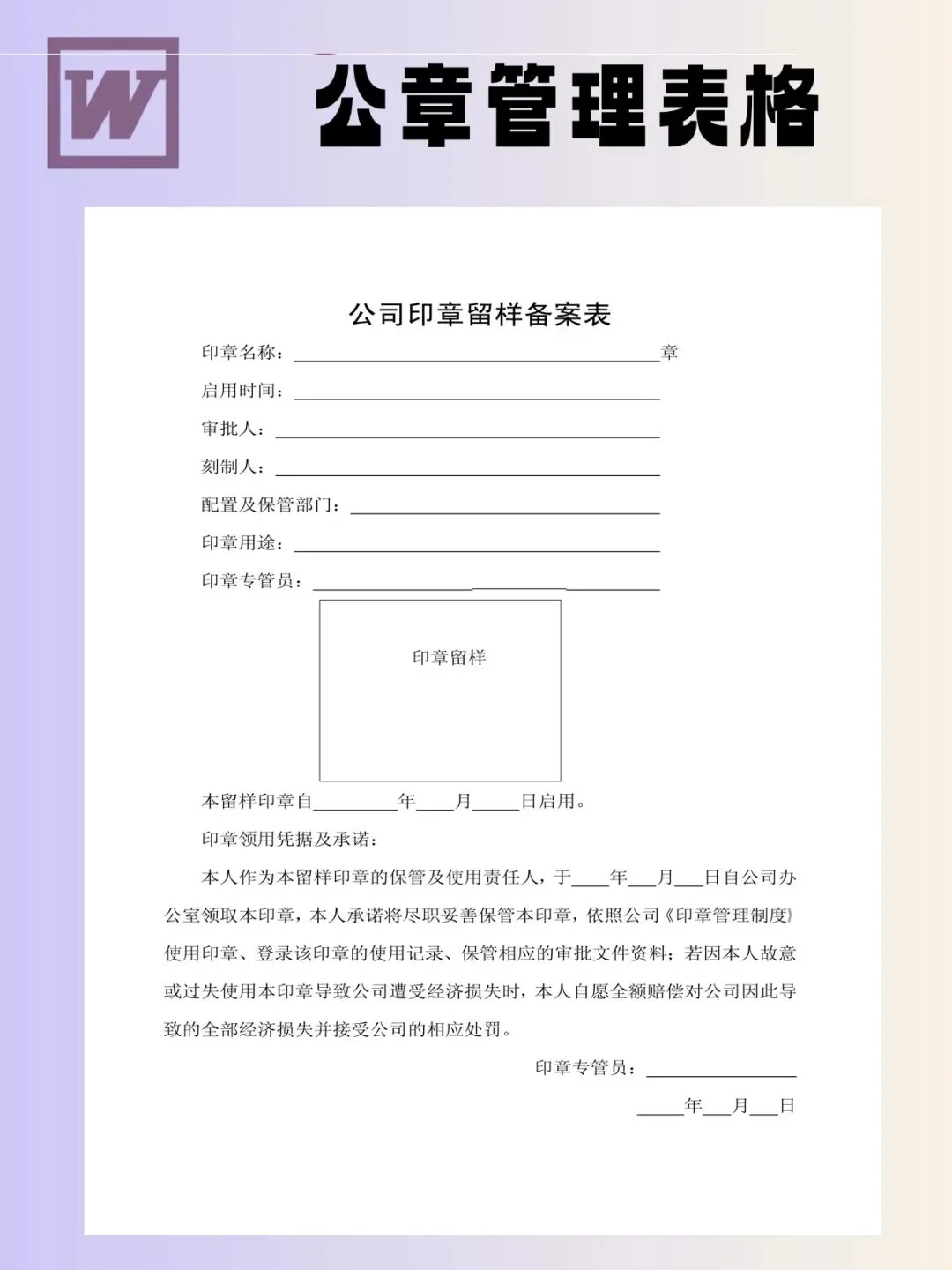 印章管理表格模板