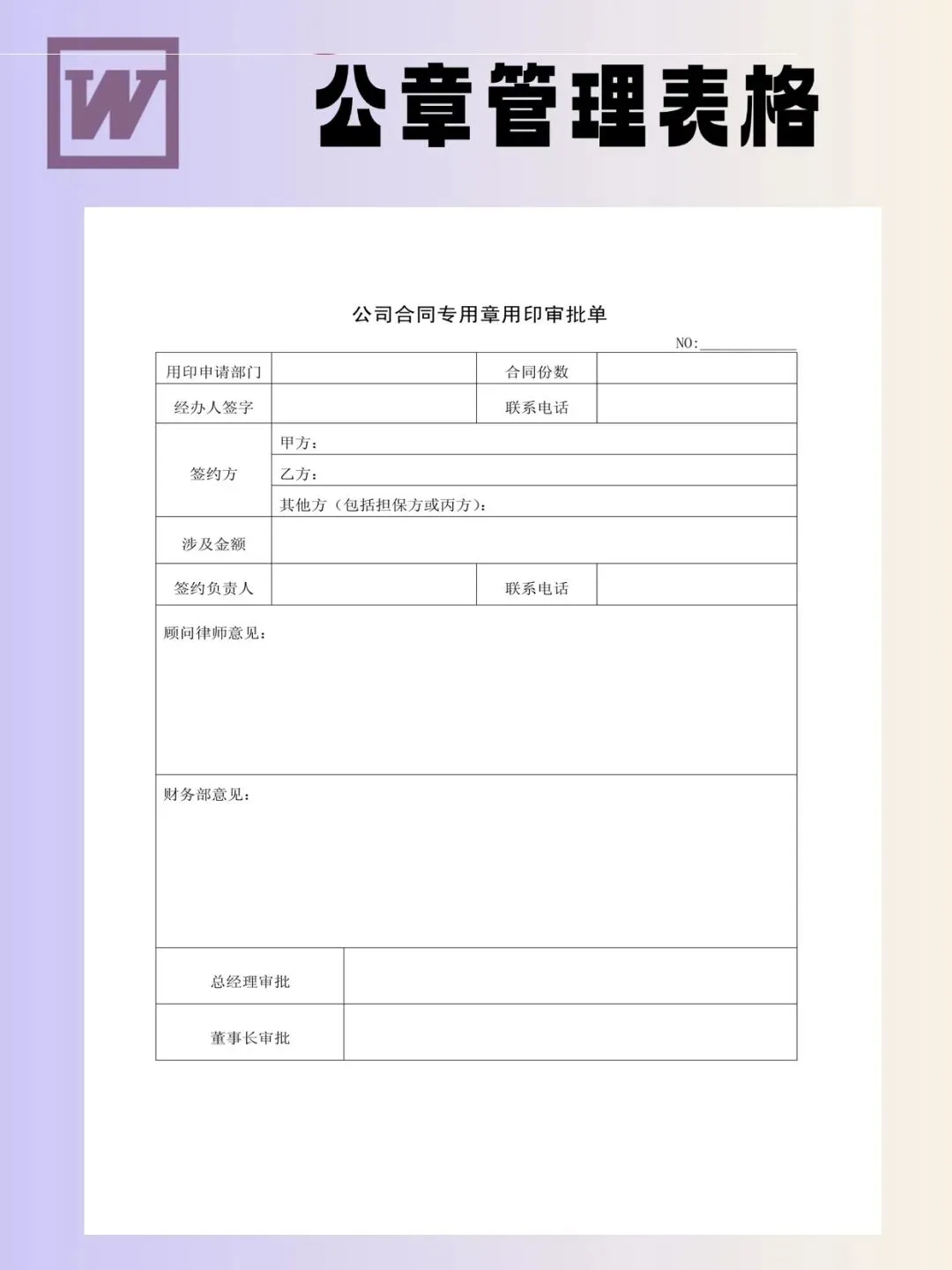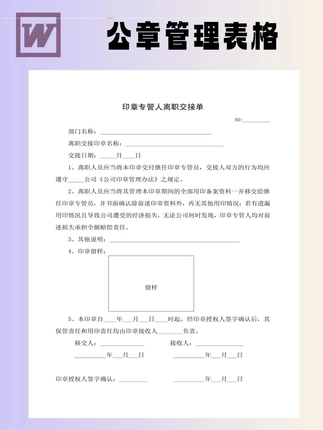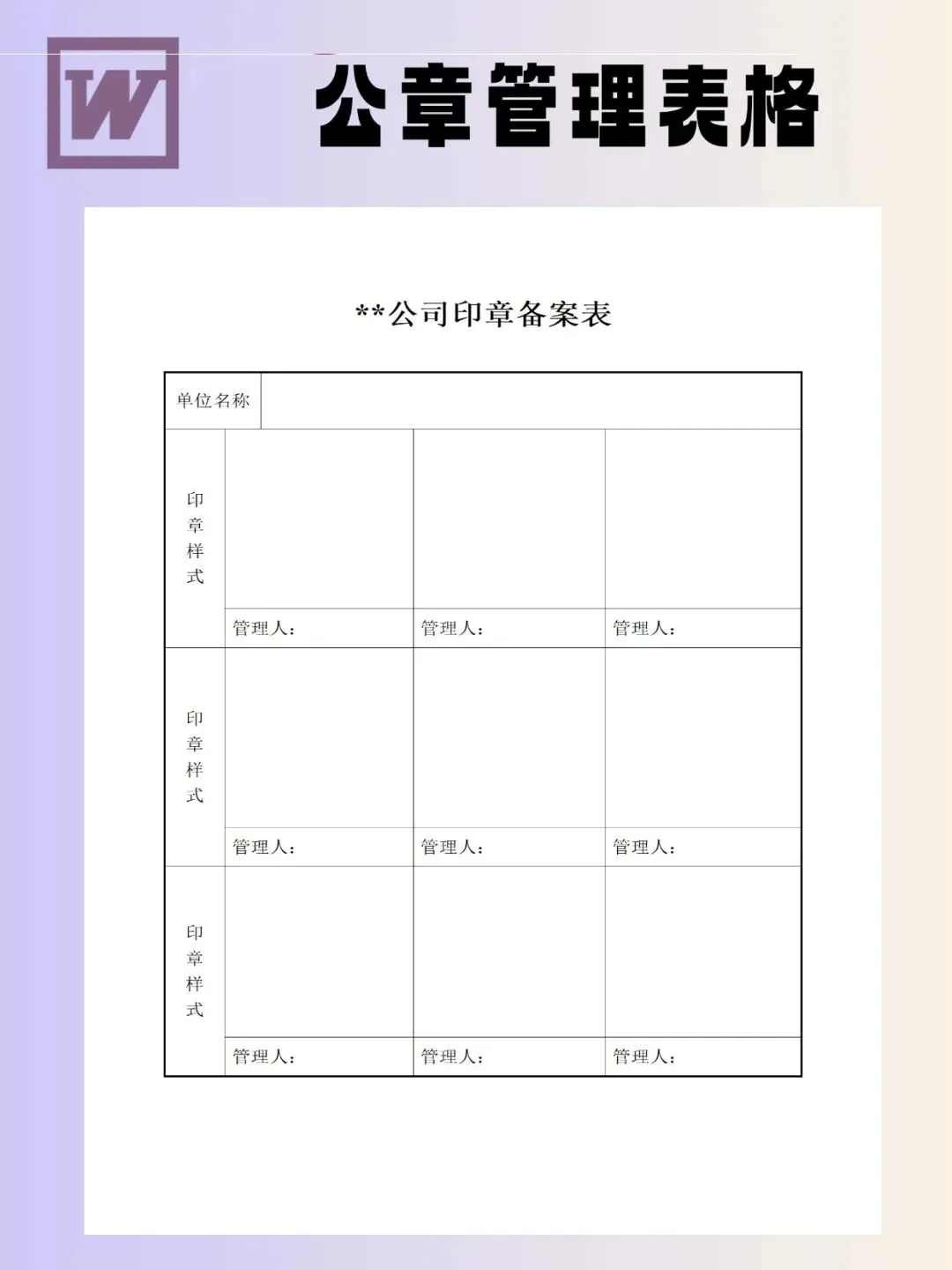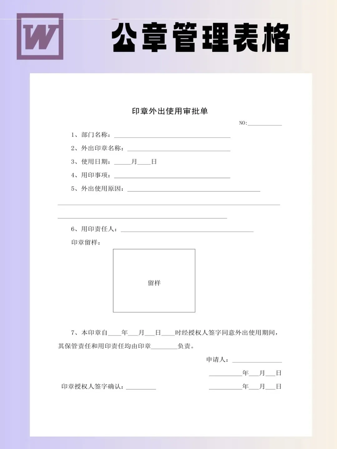印章管理表格模板